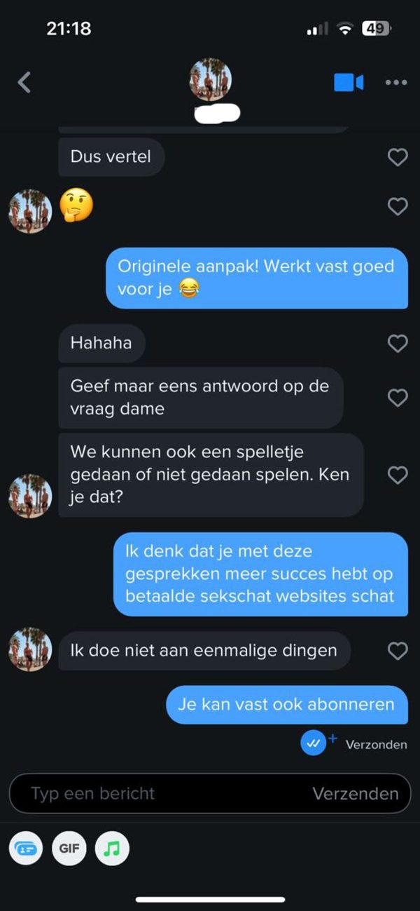 Maar soms komt het voor dat iemand zich totaal anders gedraagt dan je zou verwachten, vooral als het om een eerste gesprek gaat. Dit gebeurde ook toen een man op Tinder begon te chatten, maar al snel het gesprek op een ongemakkelijke manier in een vreemde richting stuurde. Wat begon als een veelbelovende match, werd al snel een reeks bizarre en ongepaste opmerkingen. Het was duidelijk dat deze vent het concept van Tinder-dating niet echt begreep……