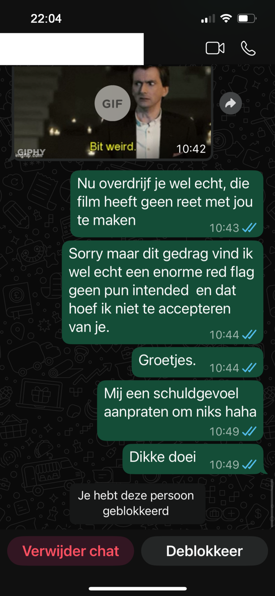 Man heeft leuk app-contact met een roodharige vrouw, maar als hij een film kijkt over een roodharige vrouw die hij slecht vindt, is het ineens gedaan