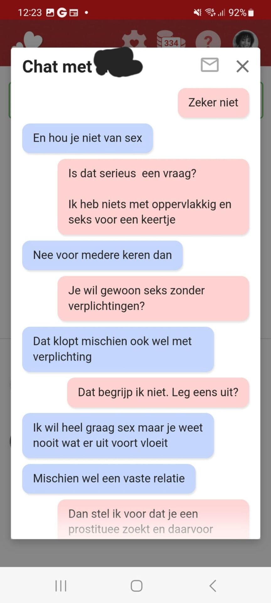 “Dat is niet echt waar ik naar op zoek ben,” antwoordde Laura rustig. “Ik ben op zoek naar een echte connectie, geen casual avontuur.” Marc reageerde niet echt op haar antwoord en bleef de toon van het gesprek ongemakkelijk maken door over “gezelligheid” te praten, terwijl hij doelde op iets heel anders.