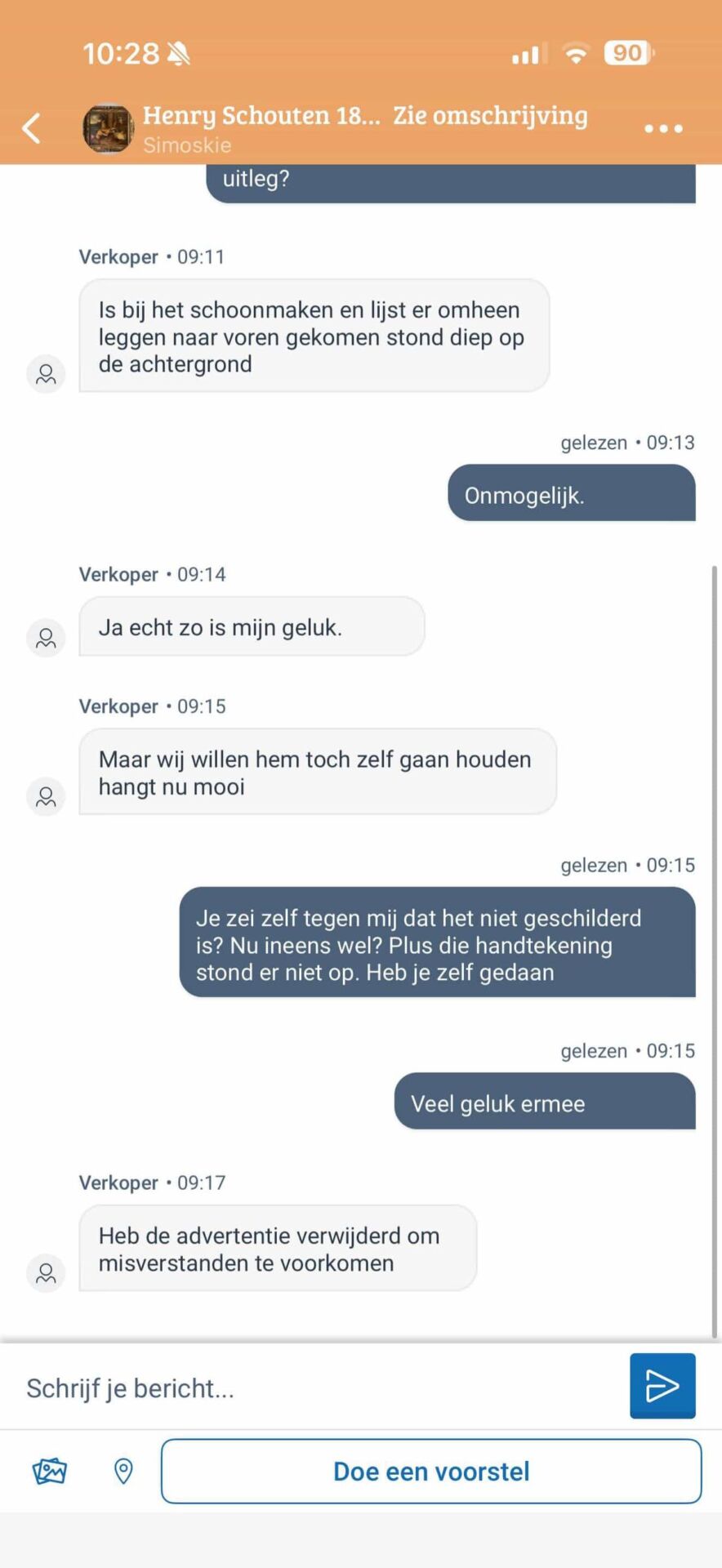 Man koopt schilderij op Marktplaats voor € 75, zet een neppe handtekening erop en probeert het door te verkopen voor € 850!