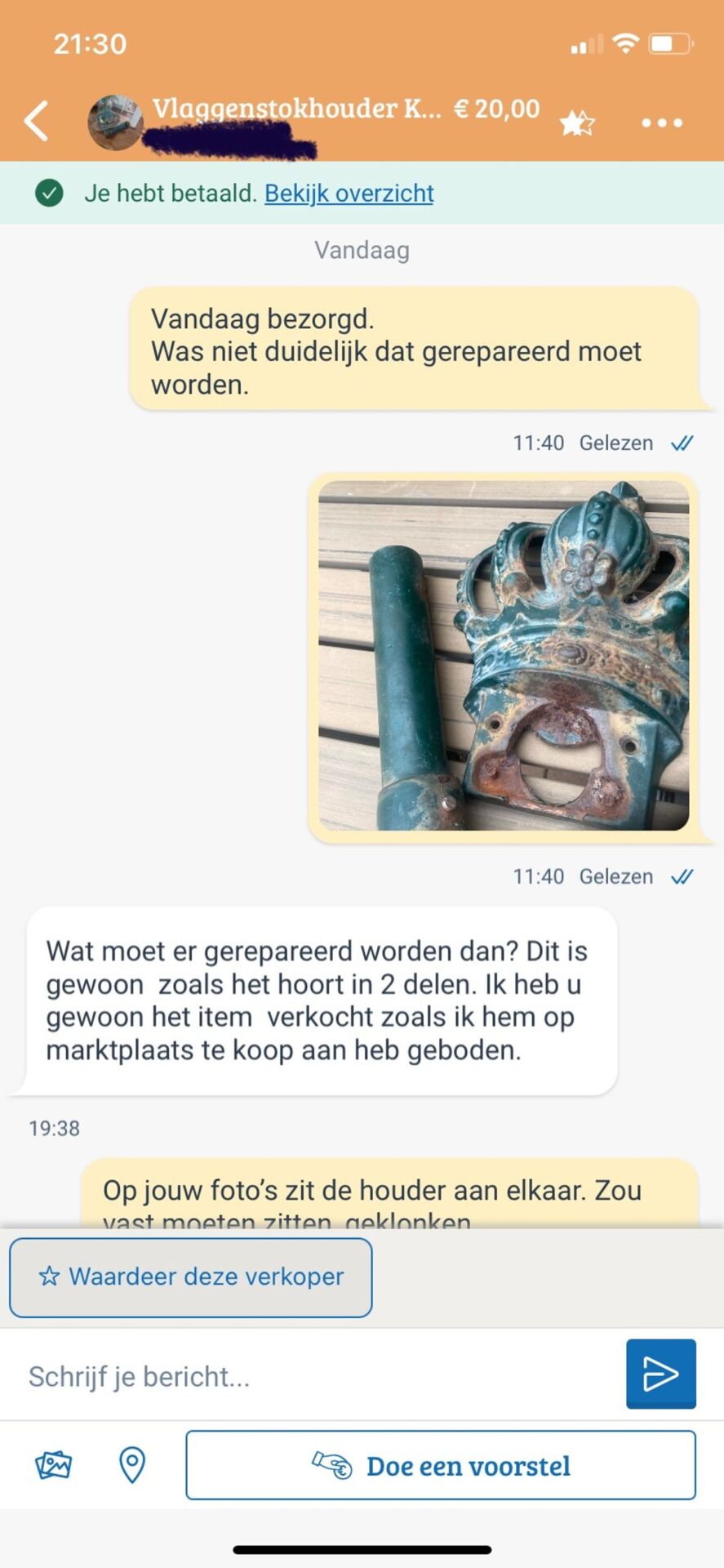 Man koopt vlaggenstokhouder die bij aankomst kapot blijkt te zijn en krijgt vervolgens deze rare tip van de verkoper