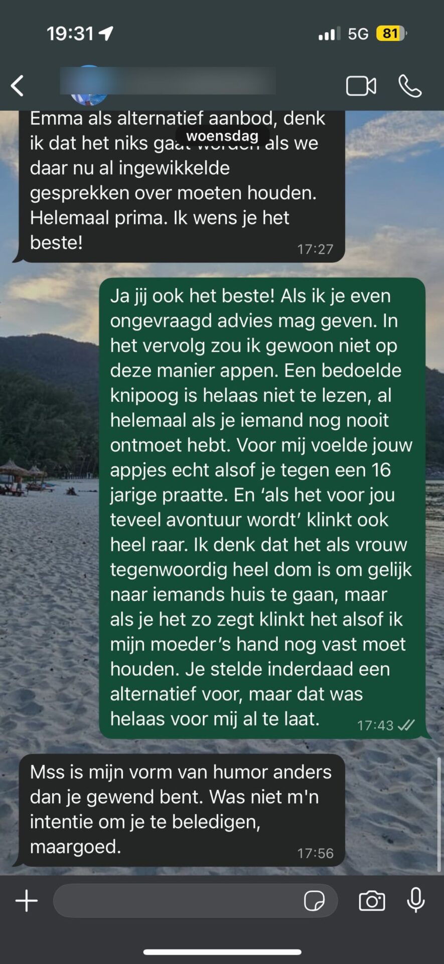 De man probeerde in eerste instantie zijn plannen te verdedigen. Hij dacht dat het een originele en leuke manier zou zijn om de date persoonlijker te maken. Maar naarmate hij hoorde hoe de vrouw zich voelde, begon hij te begrijpen dat niet iedereen zich op die manier comfortabel voelt. Het besef dat zijn huis misschien niet de juiste keuze was, begon door te dringen.