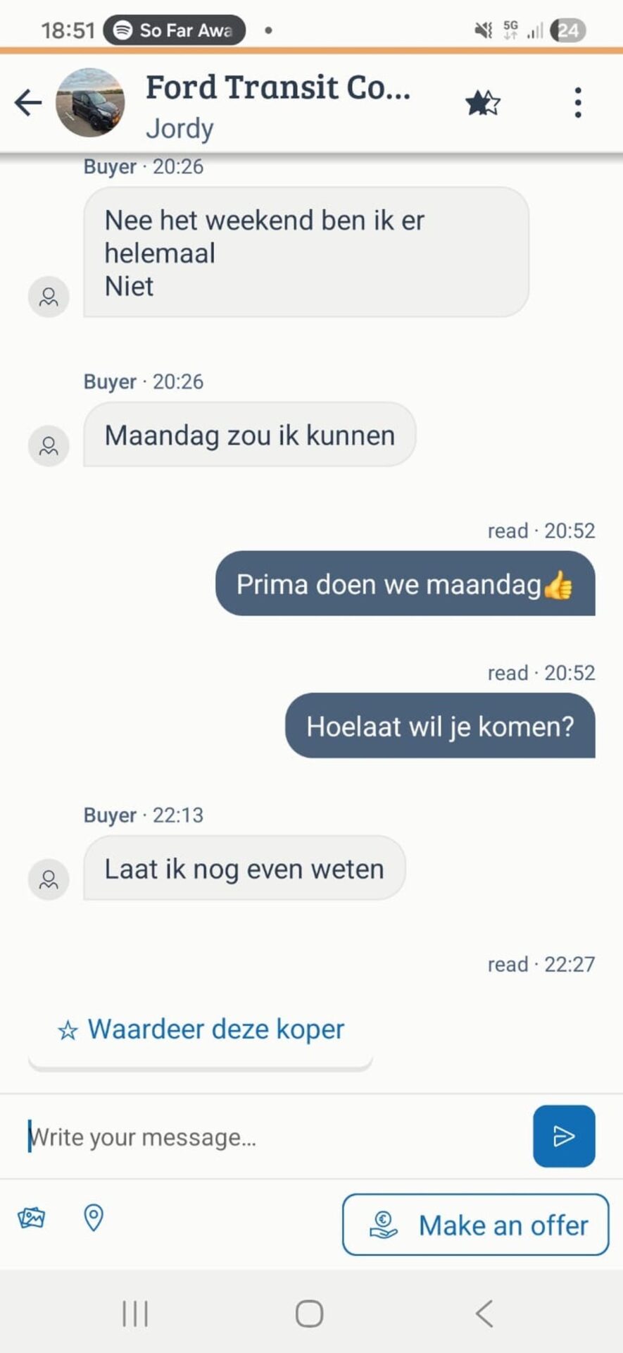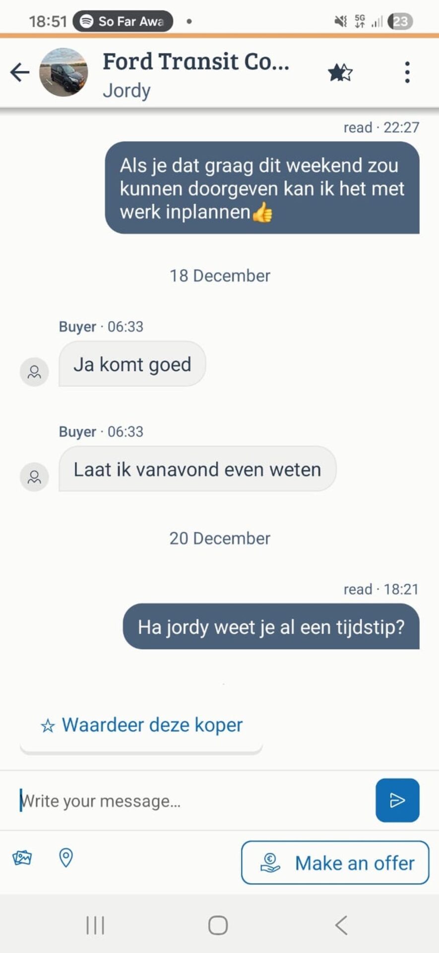 De man begint nu echt te twijfelen of het wel de moeite is om verder te proberen. Na zoveel pogingen en verwarrende berichten, voelt het steeds meer alsof de verkoper geen zin heeft om een serieuze afspraak te maken.