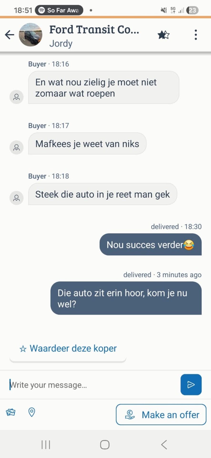 Man wil auto kopen op Marktplaats maar het maken van afspraken is helaas niet z’n sterkste kant
