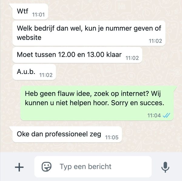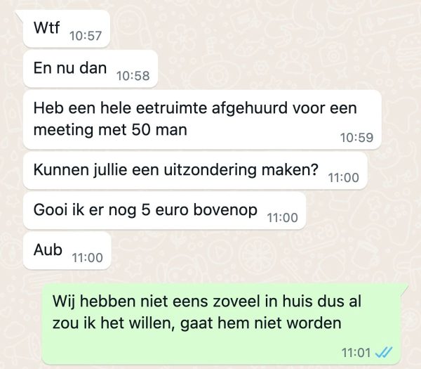 Man wil voor 50 personen broodjes bestellen, maar wordt boos als blijkt dat dat niet kan!