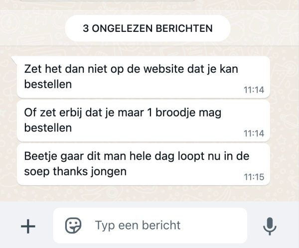 Man wil voor 50 personen broodjes bestellen, maar wordt boos als blijkt dat dat niet kan!