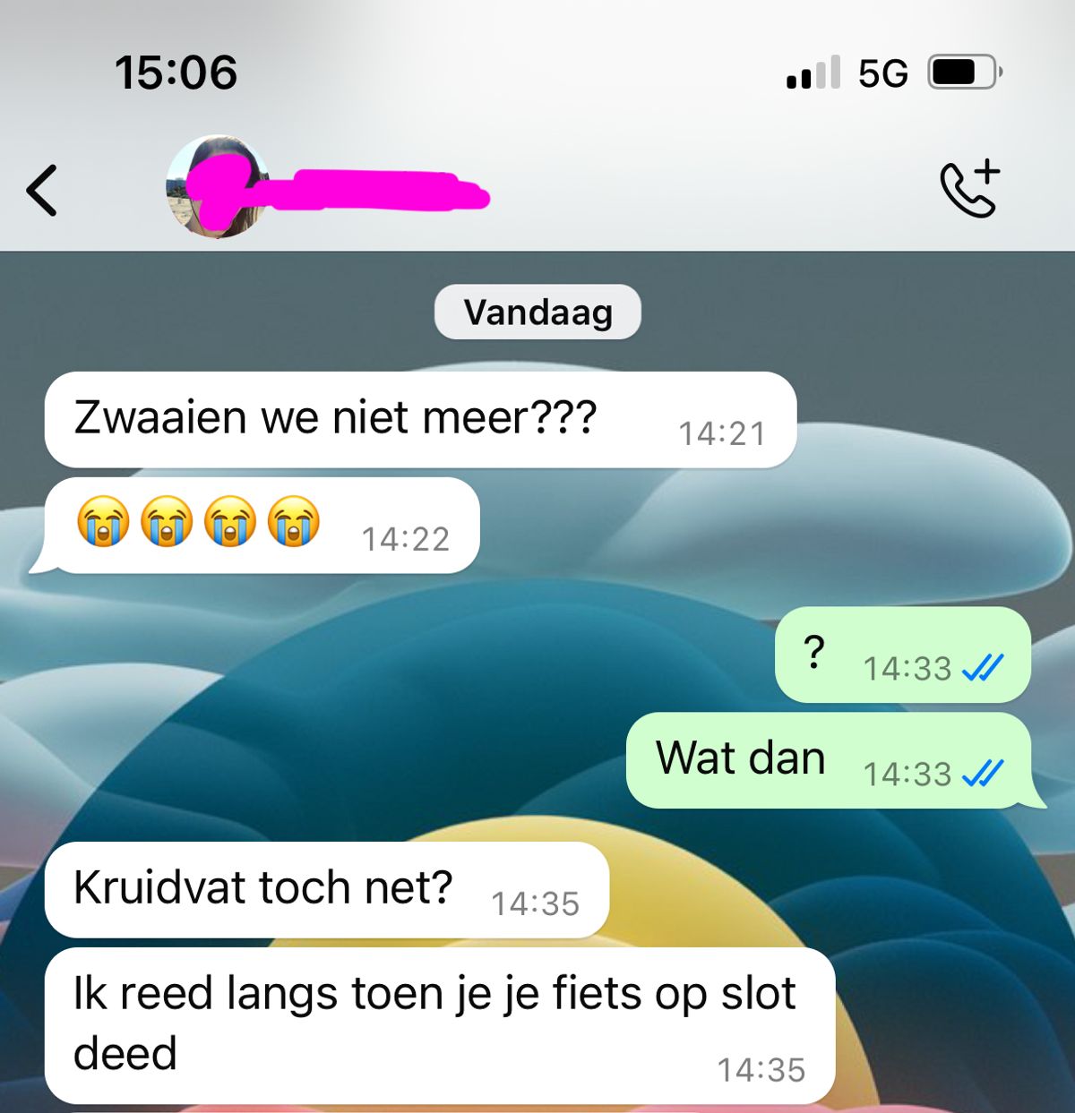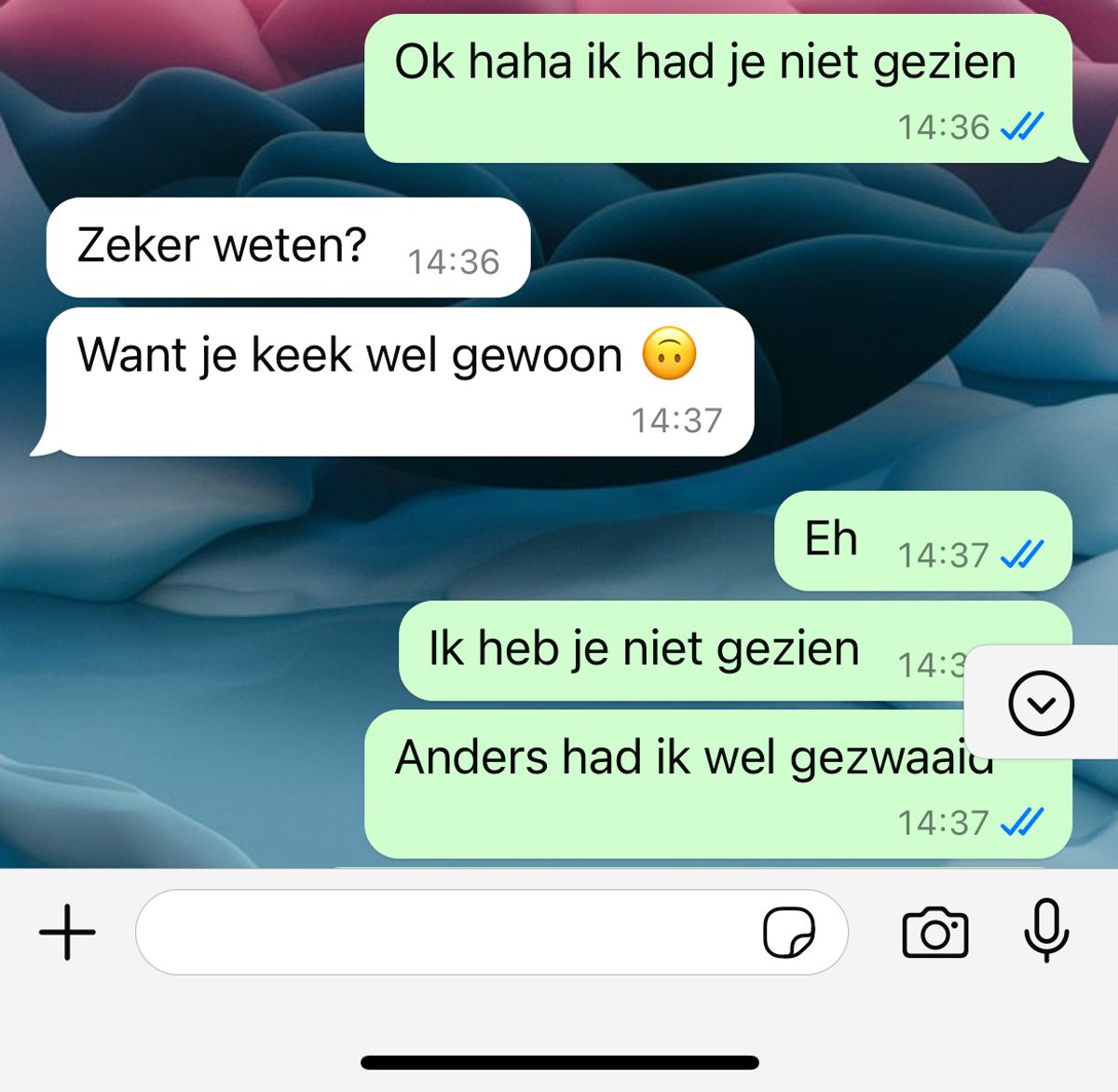 Haar klasgenootje, dat wel zwaaide, heeft het gevoel dat ze in de steek is gelaten. Ze besluit om het meisje een bericht te sturen via WhatsApp. Het blijkt dat een klein gebaar toch groot genoeg was om verwarring te veroorzaken.