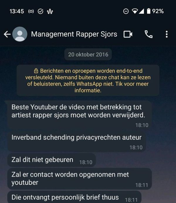 Een jongen heeft een WhatsApp-gesprek gestart met het ‘management’ van Rapper Sjors, in de hoop een samenwerking op poten te zetten. In eerste instantie lijkt alles soepel te verlopen. Hij vraagt naar mogelijkheden voor een samenwerking en de mogelijkheden voor een optreden. Maar al snel merkt hij dat de communicatie niet helemaal is wat hij had verwacht.