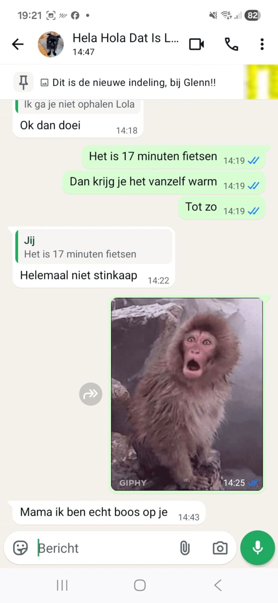 Wanneer moeder voet bij stuk houdt, komt de ultieme puberkaart op tafel: schelden. Ze noemt haar moeder zonder blikken of blozen een “stinkaap”.