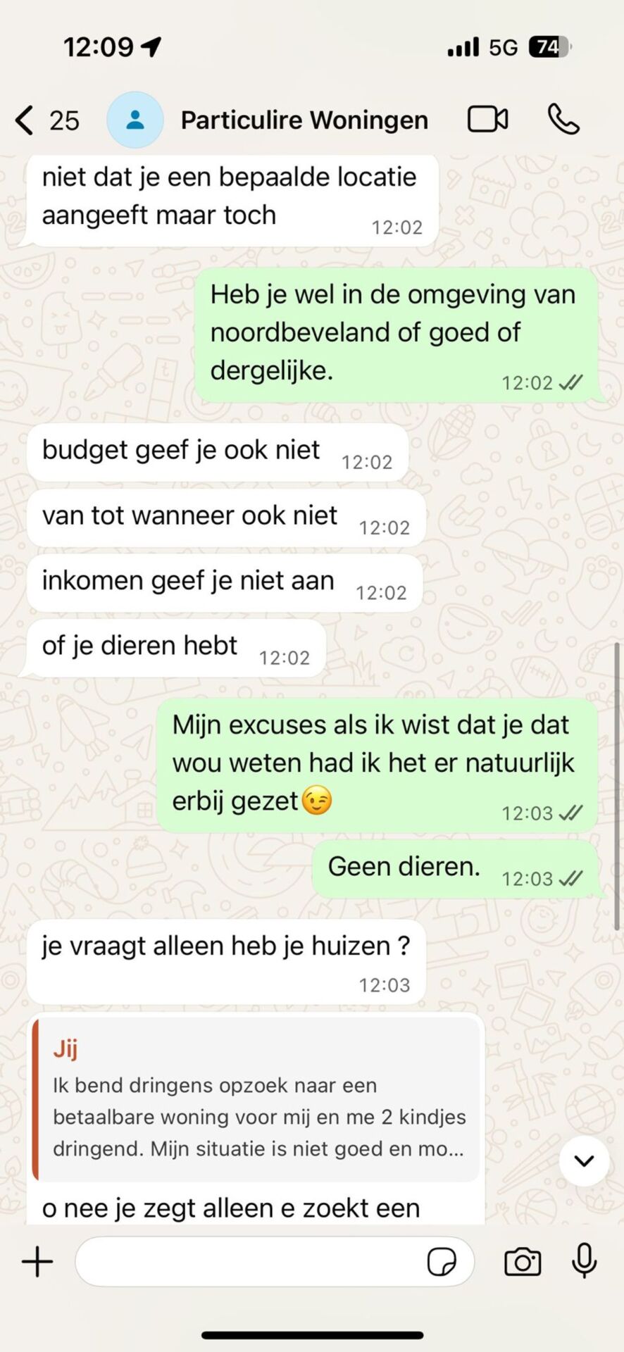 Binnen een paar minuten kreeg Kim een reactie. De verhuurder stelde zich voor als “Mister X” en bevestigde dat de woning nog beschikbaar was. “Ik heb een woning voor je,” schreef hij, “maar eerst moeten we even een gesprek hebben.”