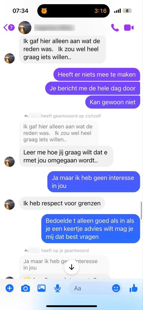 Opdringerige gast blijft berichtjes sturen, maar meisje zit daar niet op te wachten