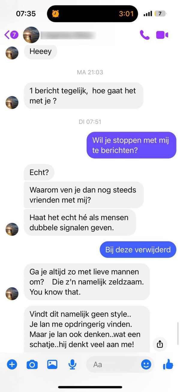 Opdringerige gast blijft berichtjes sturen, maar meisje zit daar niet op te wachten
