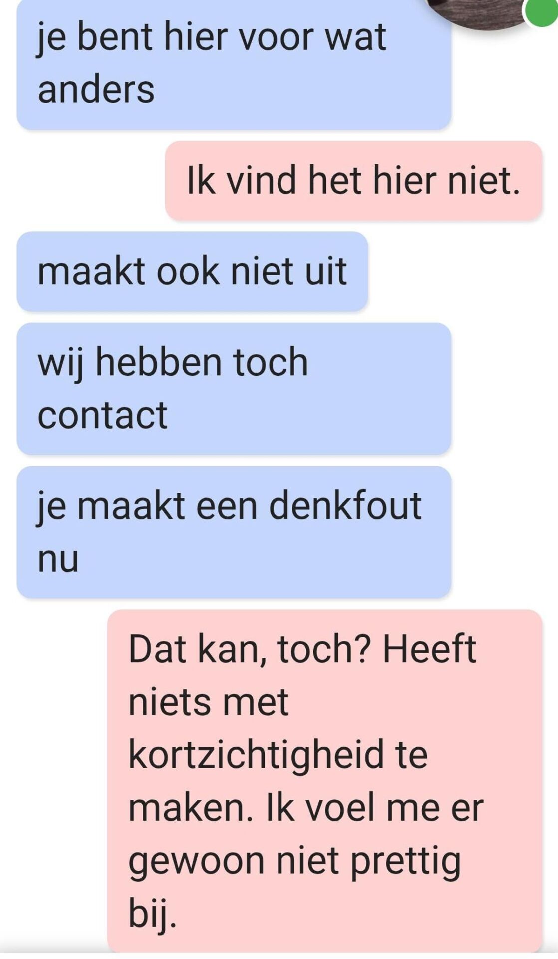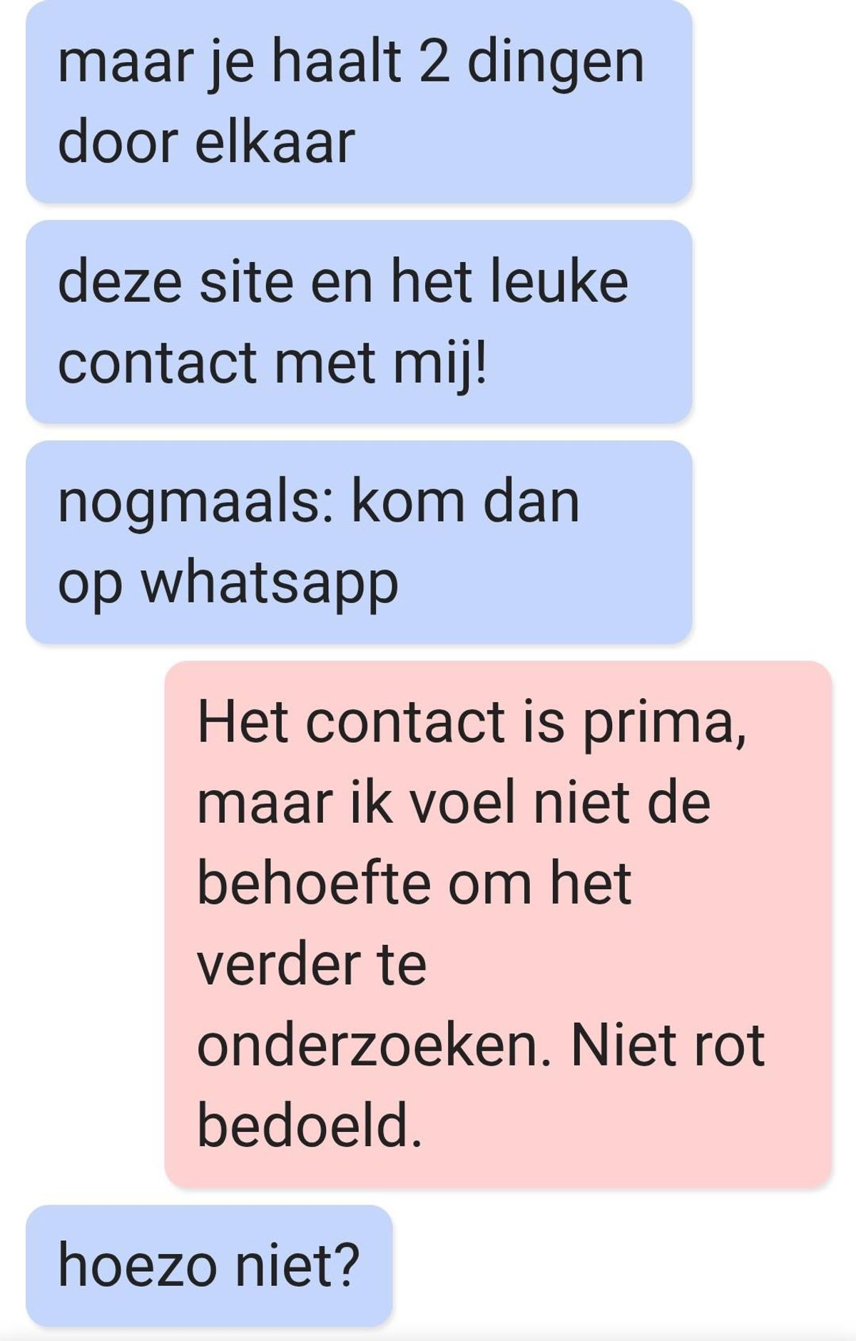 Elke keer dat ze een bericht stuurde om duidelijk te maken dat ze geen interesse had, leek hij het te negeren en vroeg hij gewoon door. Het werd steeds ongemakkelijker……