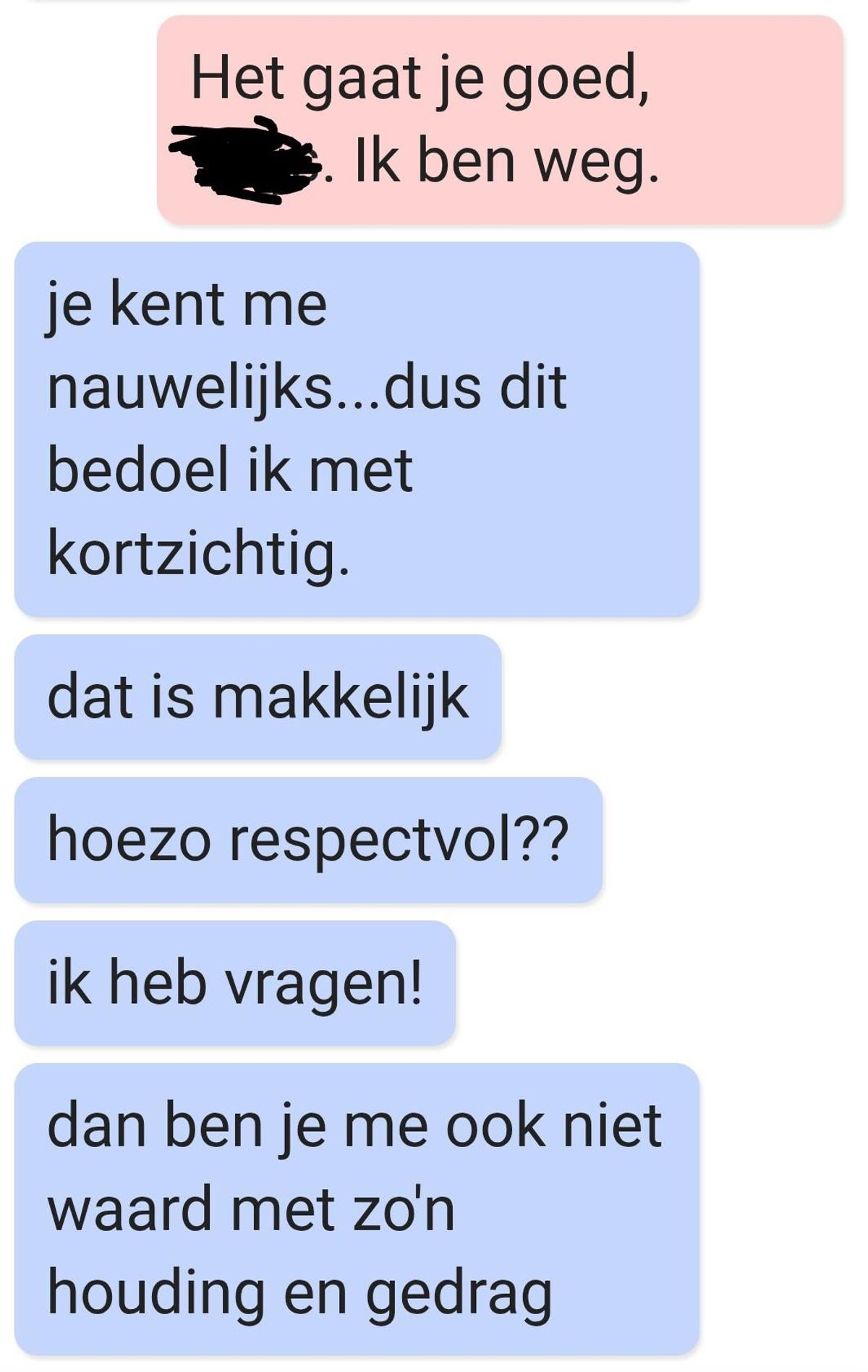 Uiteindelijk besloot ze om het gesprek simpelweg te negeren, in de hoop dat hij het eindelijk zou begrijpen. Maar de berichten bleven komen, steeds met meer vragen en opmerkingen.
