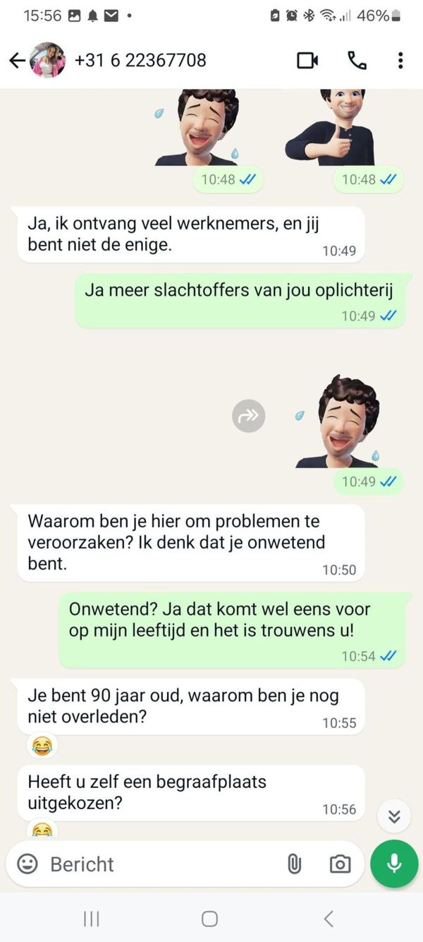 Oplichter denkt via WhatsApp geld af te kunnen troggelen van oude dame, maar faalt opzichtig