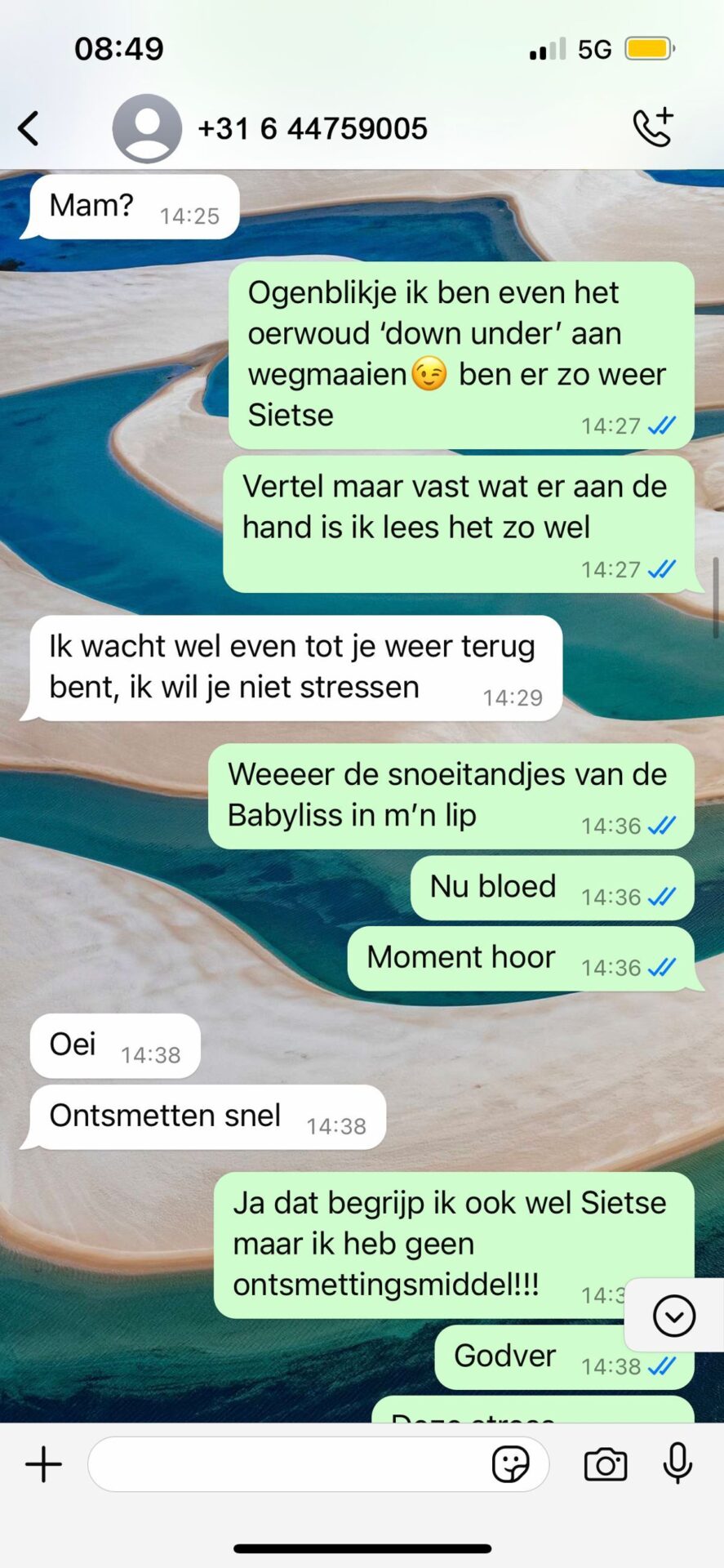 De ‘zoon’ vertelt haar dat hij tijdelijk niet bereikbaar is via zijn eigen telefoon en vraagt of ze een bedrag wil overmaken naar een nieuw rekeningnummer. De vrouw wordt even wakker geschud: waarom kan hij niet meer bellen?