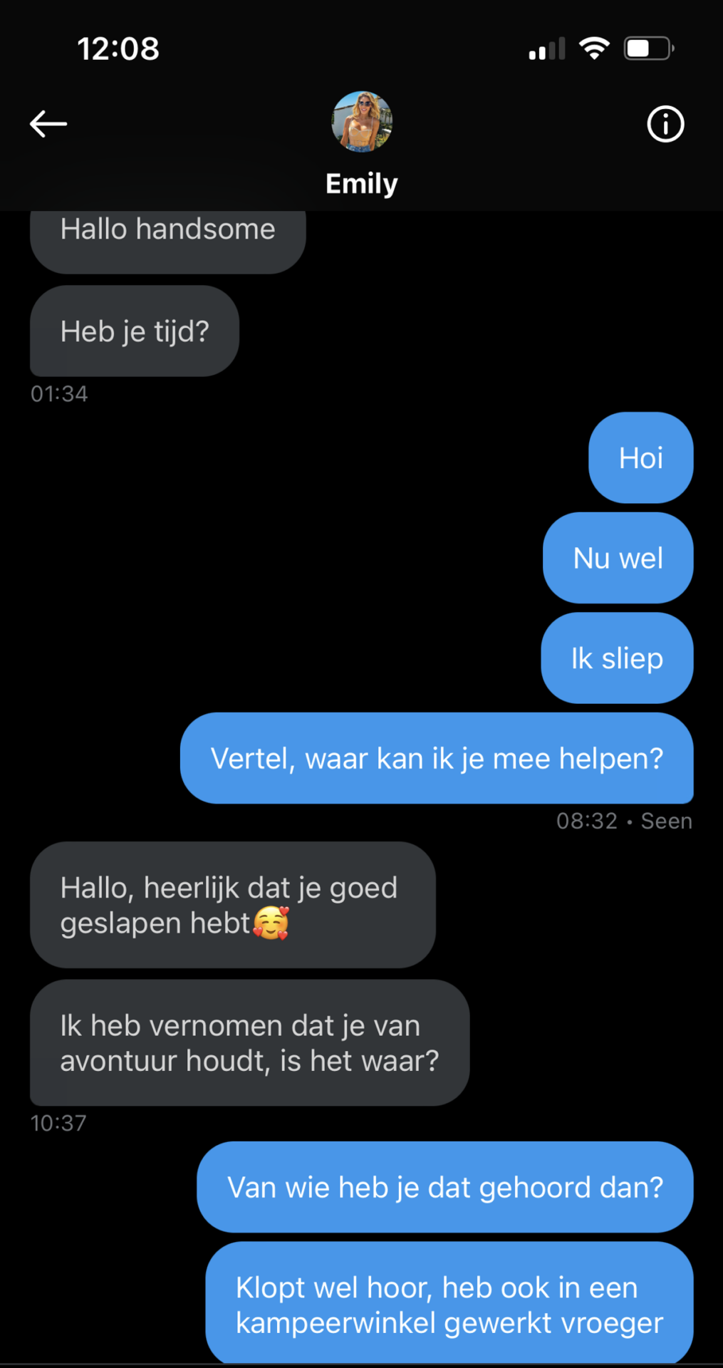 Oplichters die zich via dating-apps of sociale netwerken proberen te mengen, maken vaak gebruik van vervalste foto’s om zichzelf als een andere persoon voor te doen. Dat was ook het geval met deze oplichter, die zich via een populaire chat-app voordeed als een aantrekkelijke jonge vrouw. Haar foto was natuurlijk niet van haarzelf, maar een zoekresultaat van een model dat ze op het internet had gevonden.
