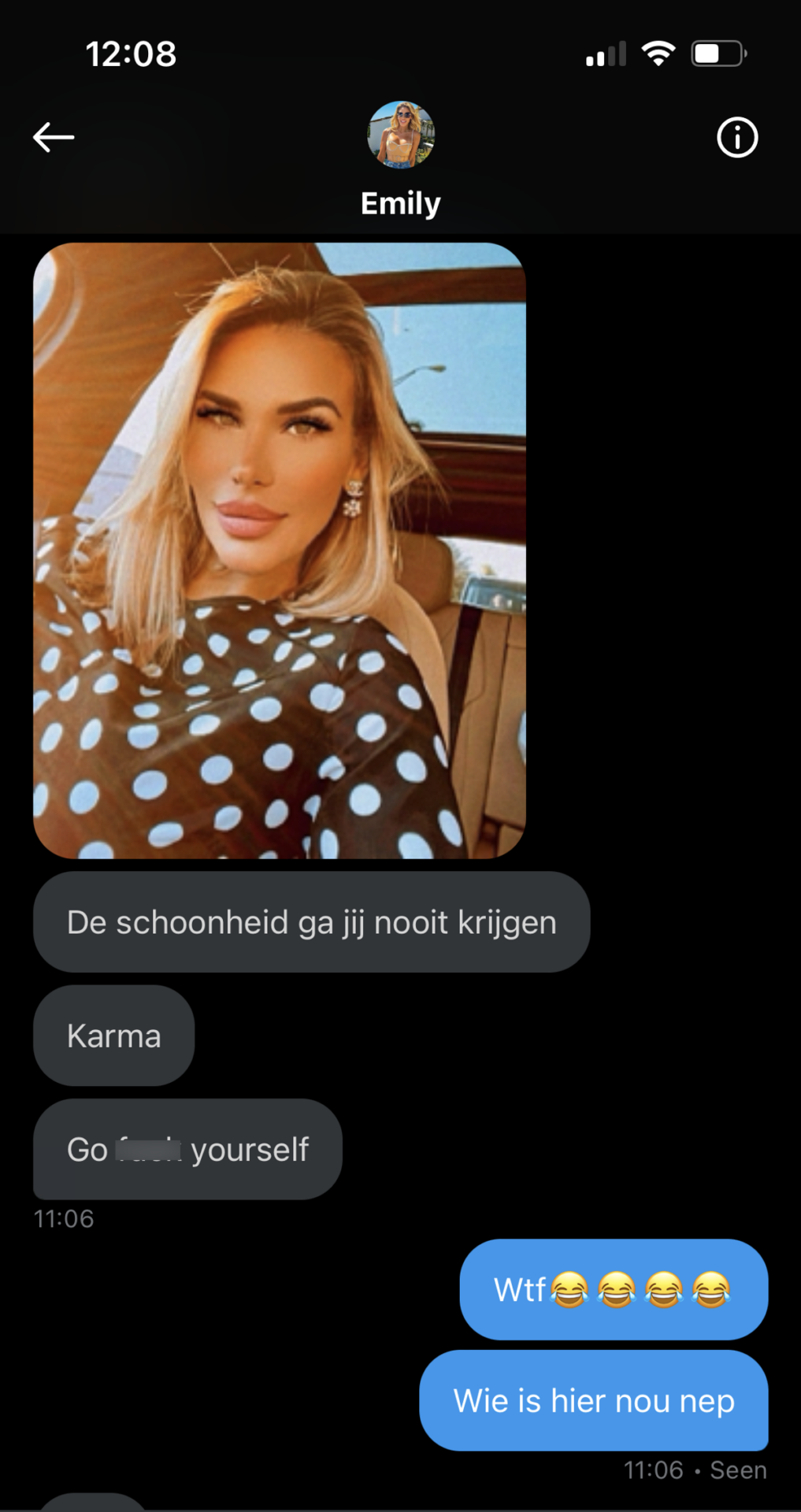 Oplichter met nepfoto barst uit in woede als ze zelf ook een nepfoto terugkrijgt!