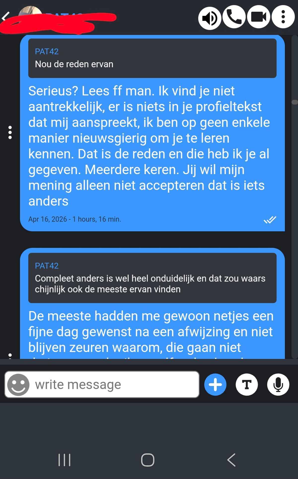 Ze realiseert zich dat, ondanks haar duidelijke afwijzing, Patrick haar grenzen niet heeft gerespecteerd. Dit is niet alleen frustrerend, maar ook een beetje beangstigend. Ze vraagt zich af hoe vaak dit nog zal gebeuren totdat iemand daadwerkelijk leert dat “nee” echt “nee” betekent.
