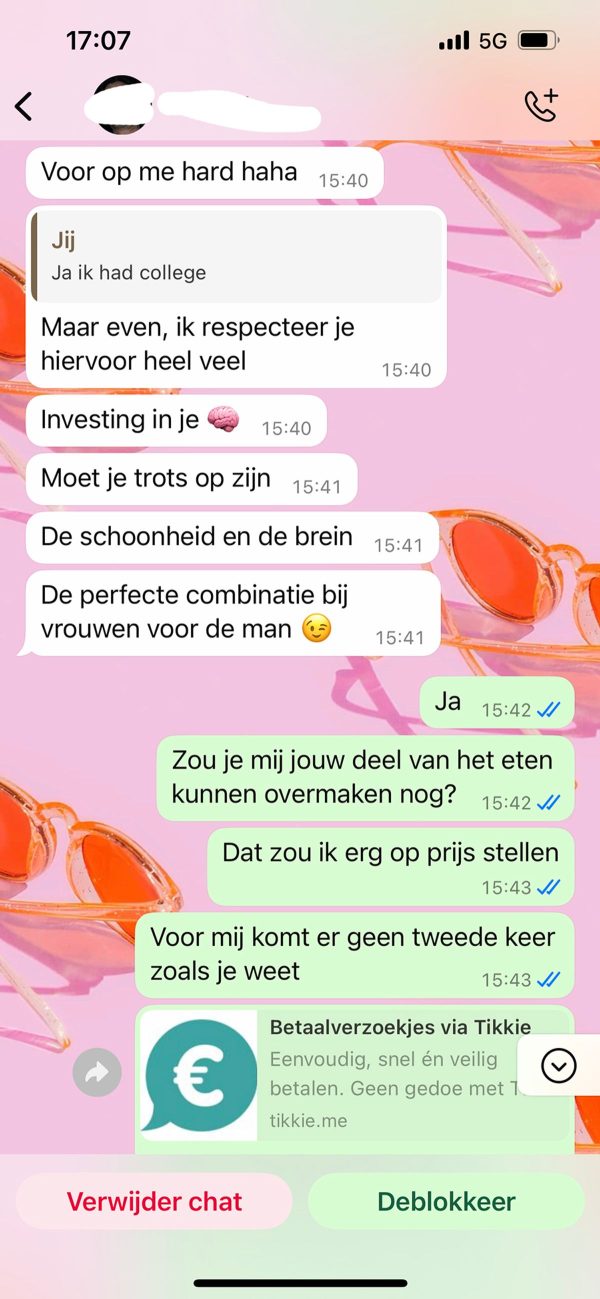 Slijmjurk laat Tinder-date alles betalen in restaurant omdat hij anders de huur niet meer kan betalen