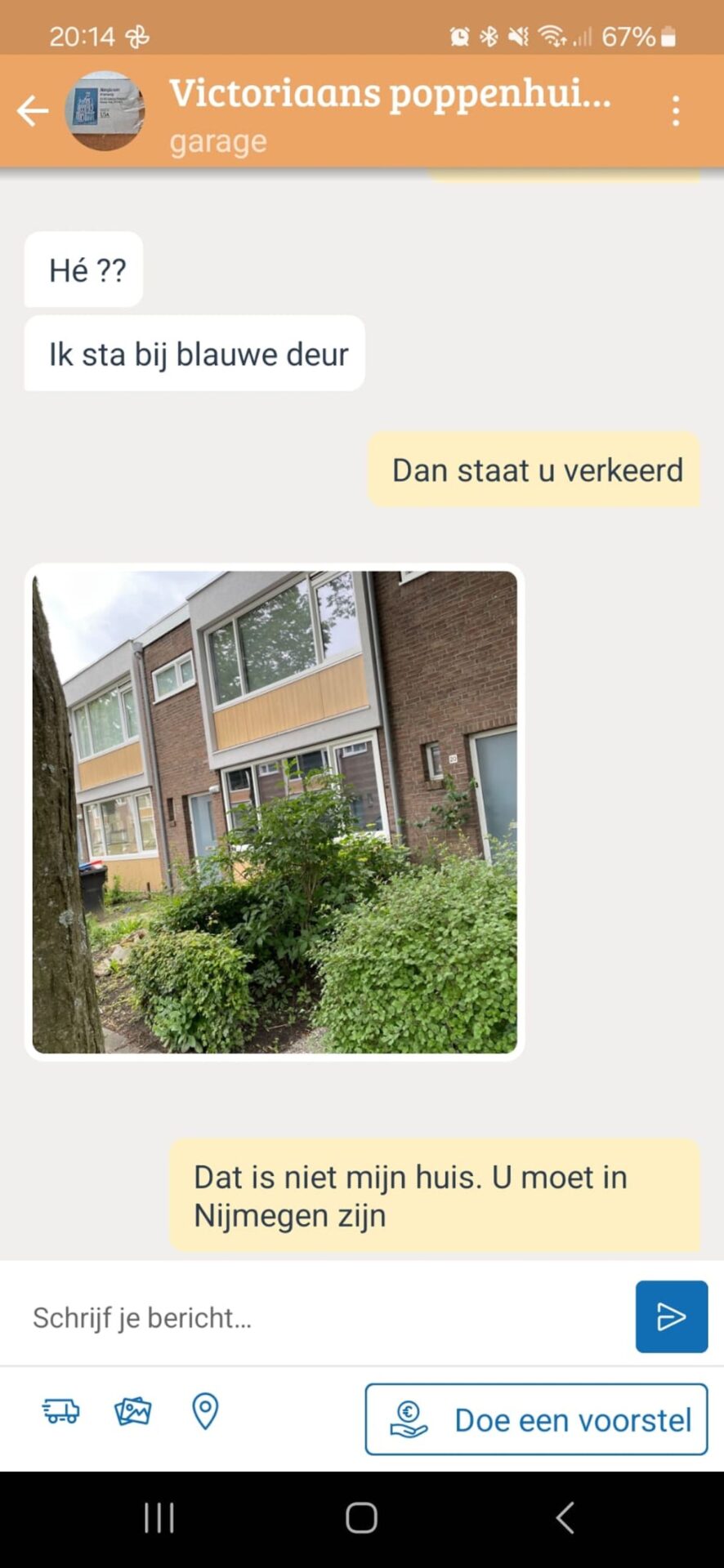 “Uhh… dit is niet het poppenhuis dat ik kwam ophalen, toch?” vroeg Stella onzeker. Het bleek inderdaad een totaal verkeerd huis te zijn. Ze had per ongeluk de verkeerde stad ingevoerd en dus het verkeerde adres bereikt.