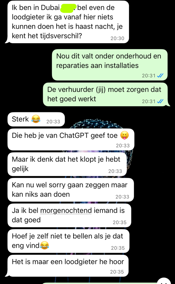 De studenten dachten dat het melden van een kapot toilet een vrij standaard probleem was, maar toen ze hun huisbaas benaderden, bleek dat niet het geval. De communicatie liep niet zoals verwacht: de huisbaas leek weinig begrip te hebben voor de urgentie van het probleem. In plaats van snel actie te ondernemen, kwamen er alleen maar vaagheden en vertragingen. Het was een situatie die langzaam escaleerde, waarbij de studenten zich steeds meer in de steek gelaten voelden.