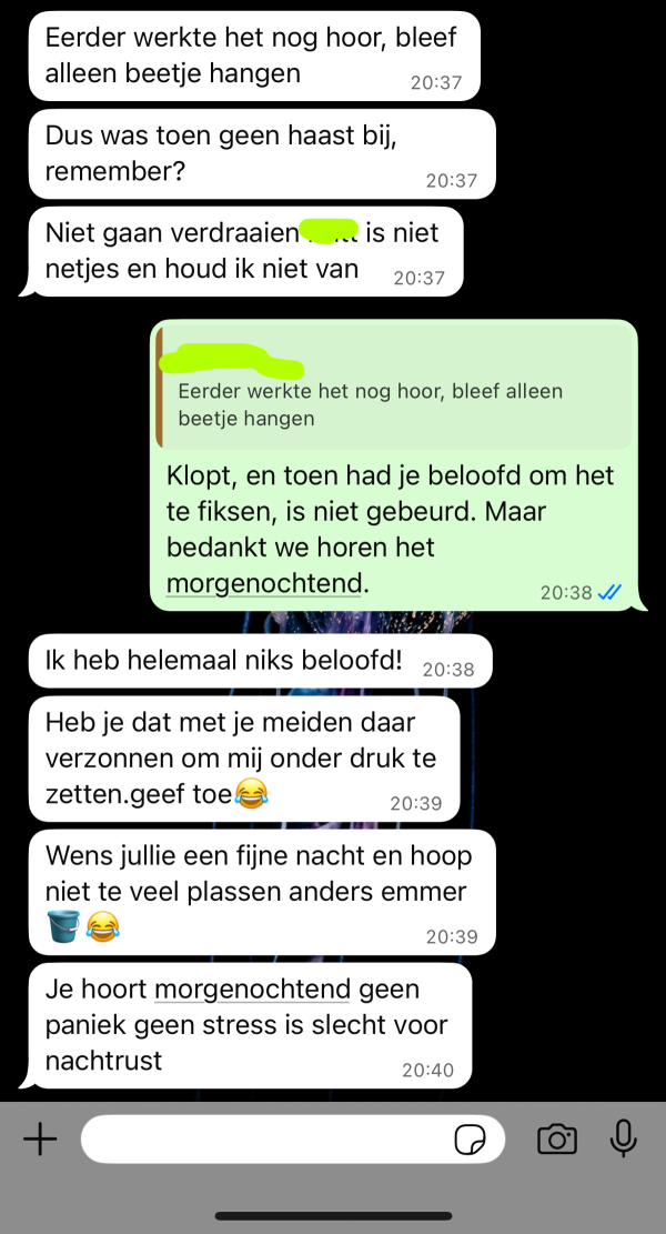 Uiteindelijk wisten de studenten een manier te vinden om de situatie om te buigen. Door geduldig door te zetten en aan te geven hoe belangrijk het voor hen was om het probleem snel op te lossen, begon de huisbaas eindelijk meer aandacht aan hun verzoek te besteden. Misschien kwam het door hun volharding, of misschien realiseerde de huisbaas zich dat dit probleem niet langer kon worden genegeerd. Hoe dan ook, het gesprek eindigde met de belofte van een snelle reparatie.