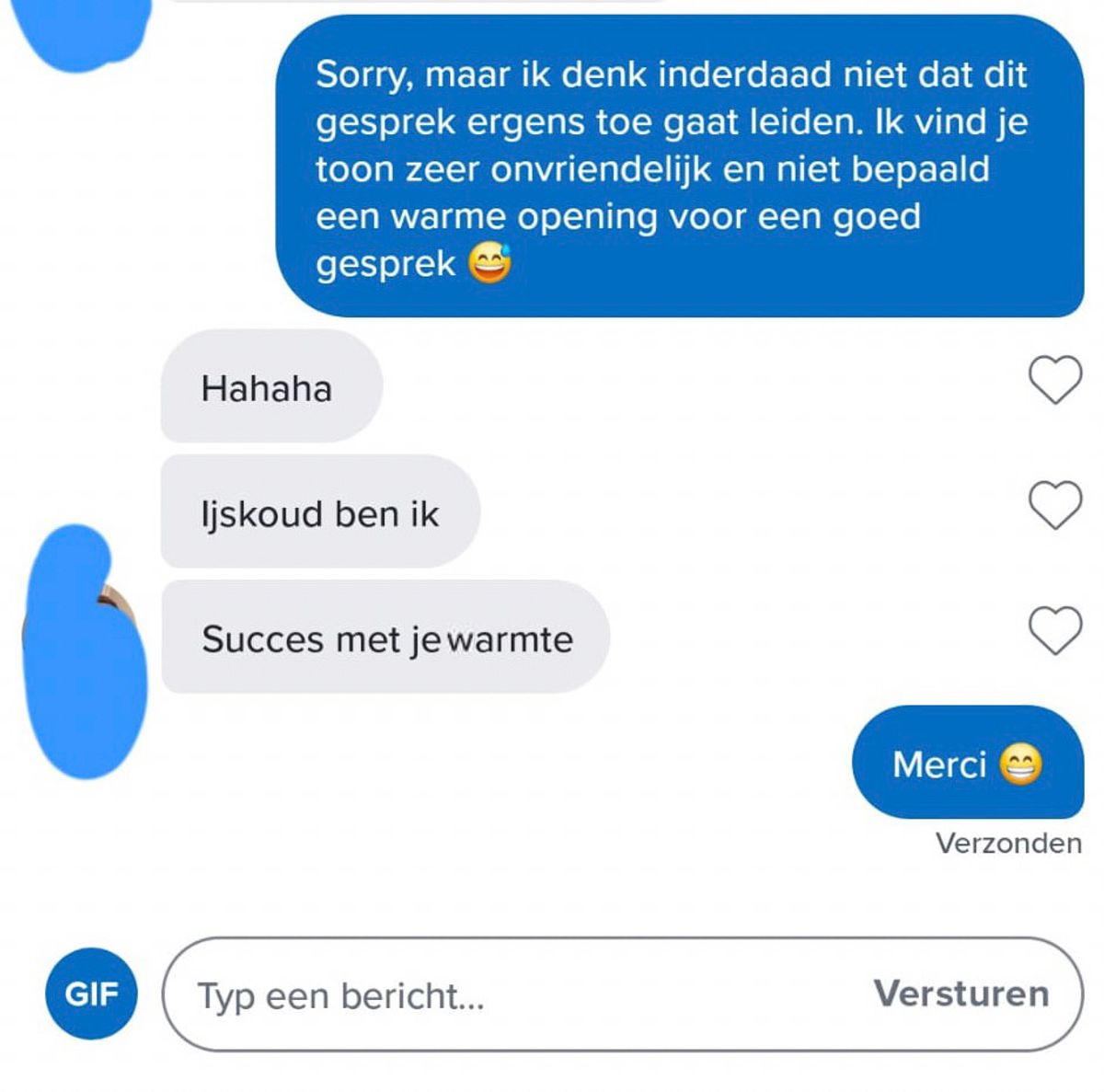 Maaike begon zich steeds meer af te vragen waarom ze überhaupt doorging met dit gesprek. “Waarom doe je zo moeilijk? Als je niet echt geïnteresseerd bent, kunnen we het dan gewoon laten?” vroeg ze uiteindelijk, iets directer dan ze normaal zou zijn. Tom antwoordde met: “Nou, je hoeft het niet zo serieus te nemen. Je vraagt veel vragen.”