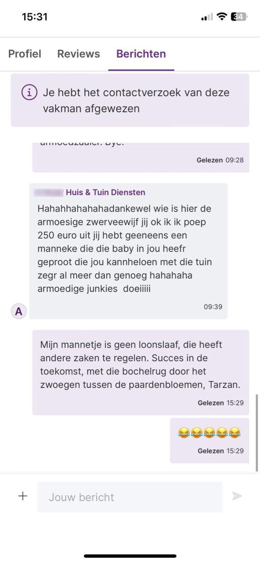 De tuinman legde uit dat hij niet alleen het onkruid wiste, maar ook de grond bewerkte en zijn professionele ervaring had. Toch vond de klant dit geen reden om zo’n hoge prijs te vragen voor een uurtje werk.