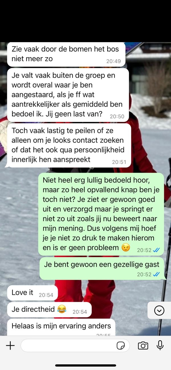 Met elke glimlach die hem wordt gegeven, voelt hij zich ongemakkelijker. “Misschien zou het beter zijn als ik gewoon een beetje minder knap was,” denkt hij bij zichzelf. Het is een vreemd verzoek, maar in zijn ogen is het de enige manier om wat rust te krijgen.