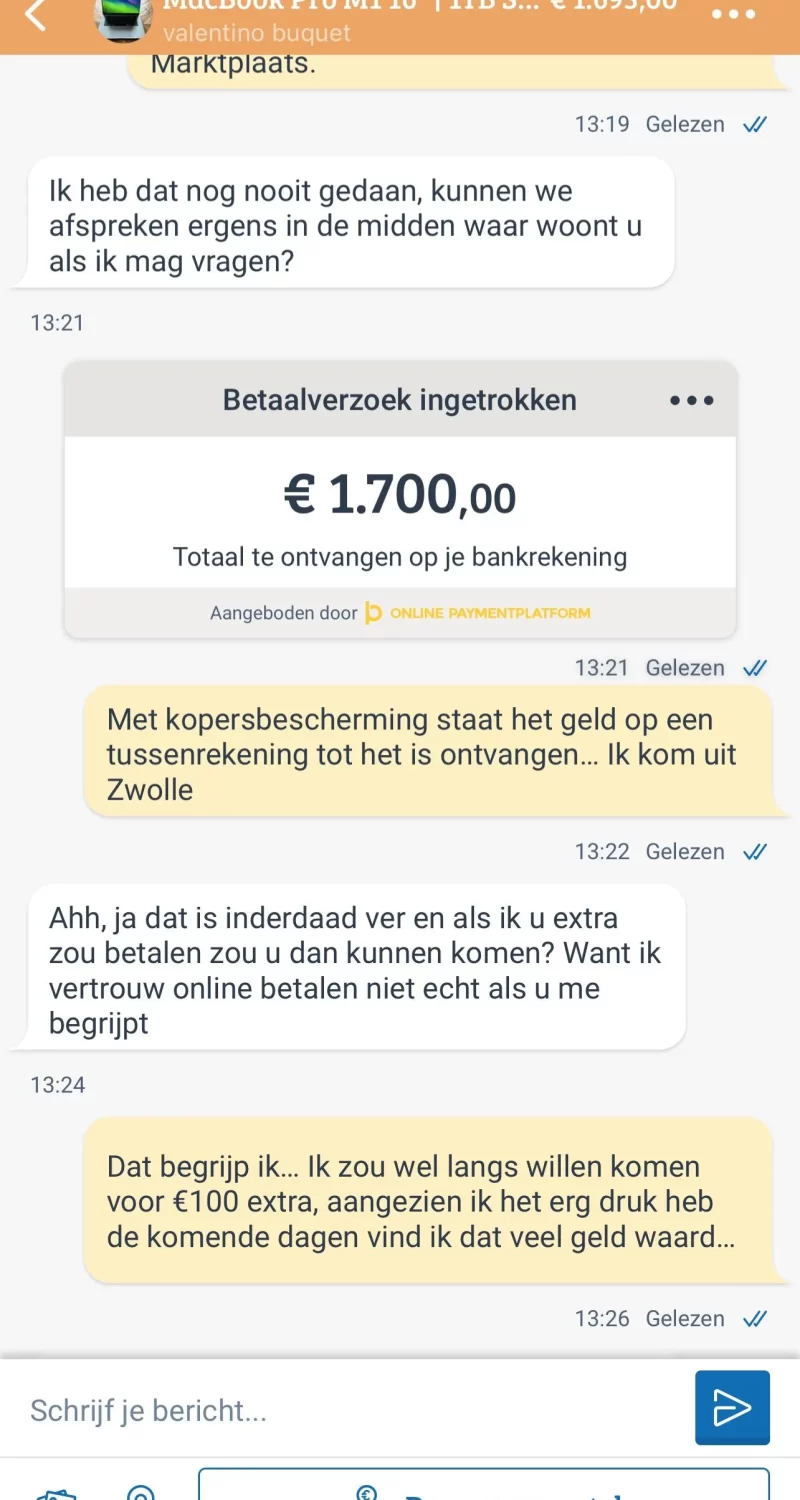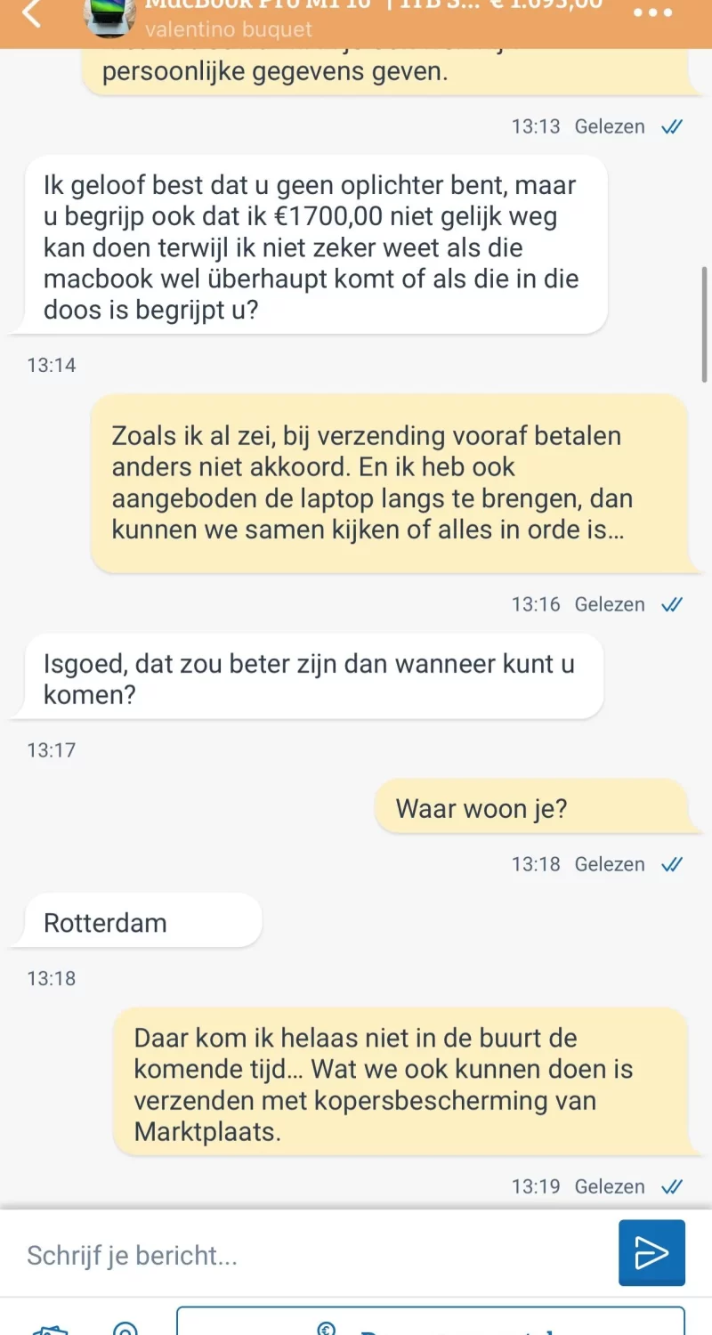 Bij aankomst in Rotterdam ontmoette de man de koper op een afgesproken locatie. De koper leek in eerste instantie een betrouwbare persoon, die interesse toonde in de Macbook Pro en enthousiast was over de deal. Ze spraken af om het bedrag over te maken zodra de laptop werd gecontroleerd en geïnspecteerd.