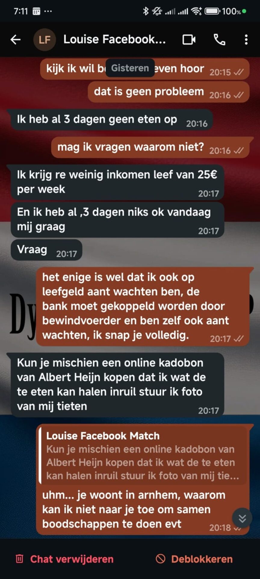 Vrouw begint al vóór de eerste date te bedelen om geld en komt met een bizar ruilverzoek