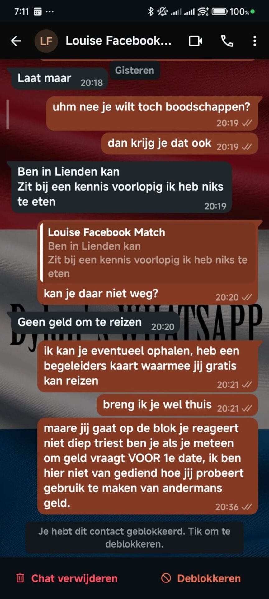 Vrouw begint al vóór de eerste date te bedelen om geld via WhatsApp en komt met een bijzonder ruilverzoek!