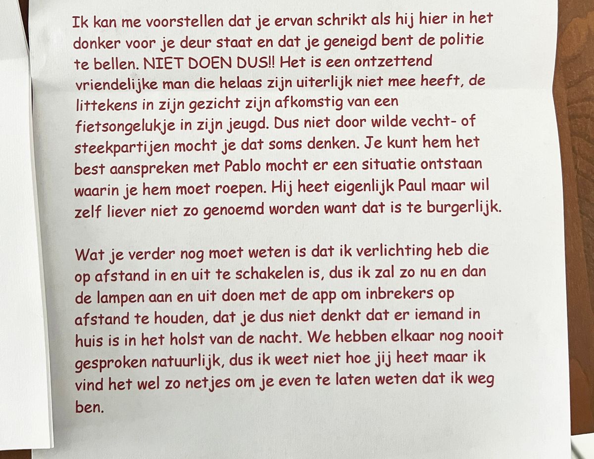Vrouw gaat drie weken op vakantie en laat deze brief achter bij haar buren met een paar belangrijke aandachtspuntjes!