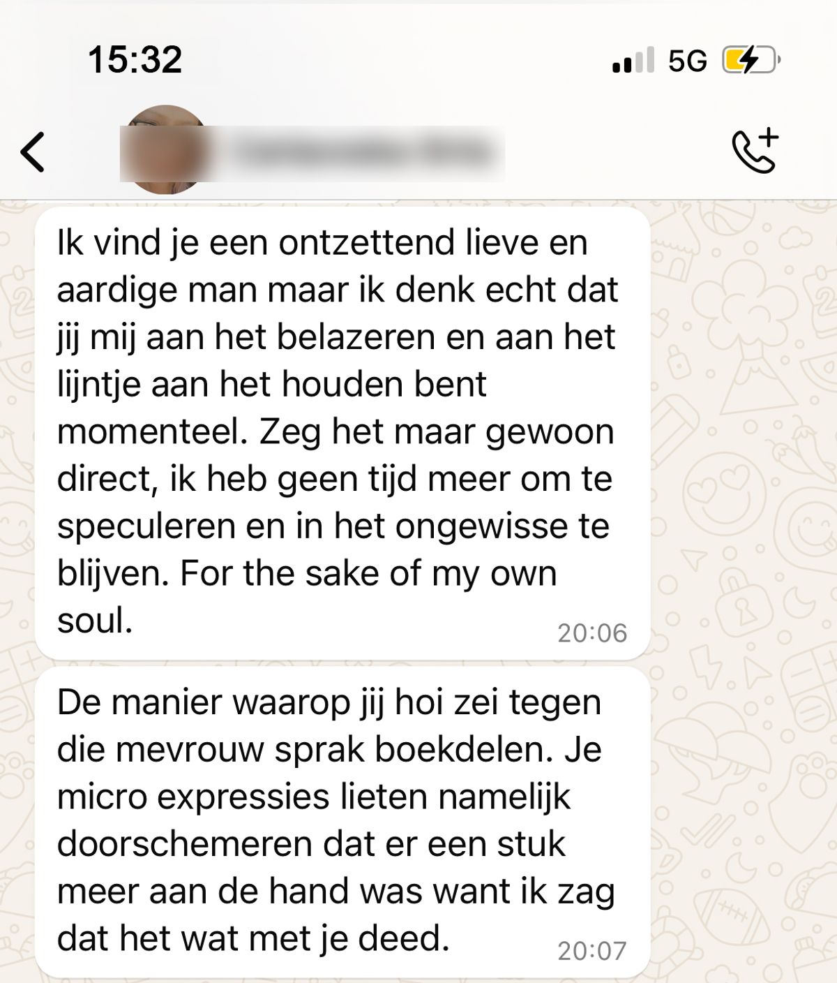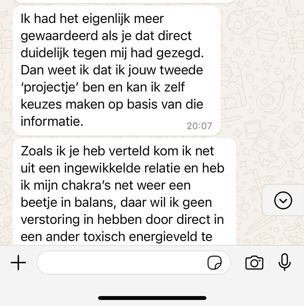 In haar berichten maakte ze duidelijk dat ze niet geïnteresseerd was in het verlengen van de date. De woorden waren scherp en het gesprek was verre van relaxed.