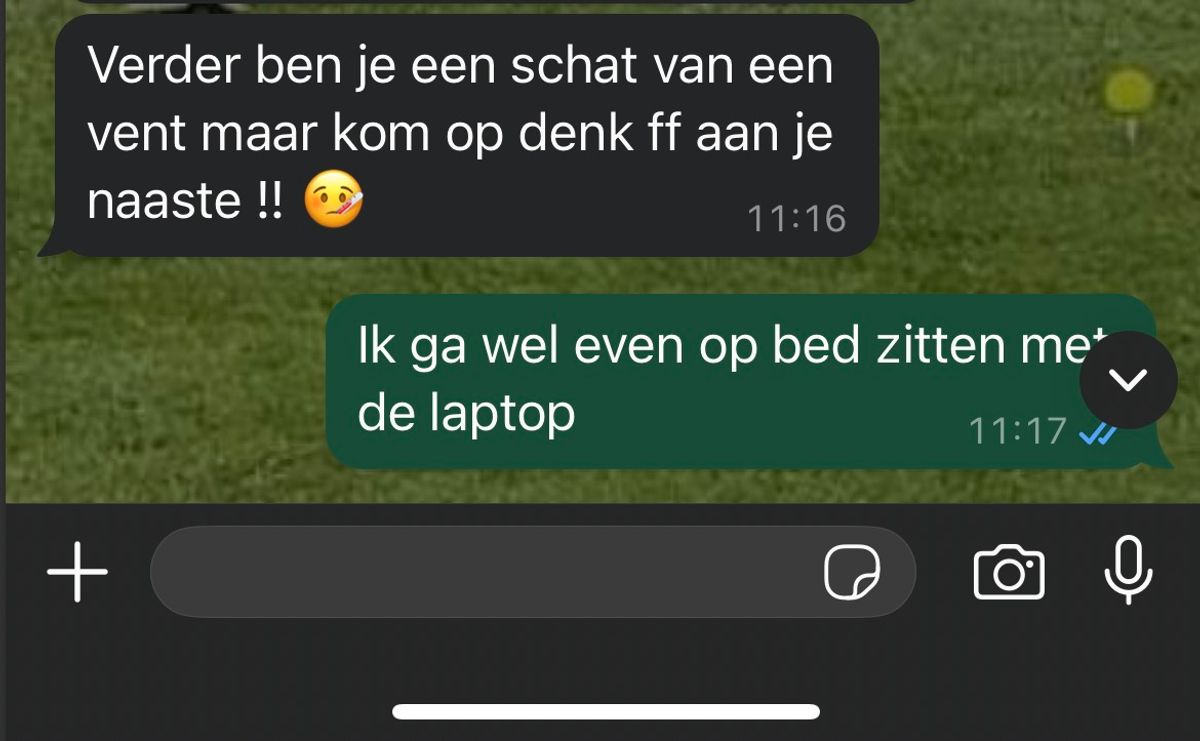 Sophie reageerde snel: “Dat klinkt vervelend! Heb je al geprobeerd hem vriendelijk te vragen om rustiger te lopen? Maar als dat niet werkt, misschien heb ik wel een betere oplossing.” Julia was benieuwd en wachtte op haar volgende bericht. Sophie stuurde: “Mijn zus heeft eens een tip gekregen om geluiden te verminderen: probeer hem te wijzen op zachte sloffen of tapijten die helpen dempen. Het klinkt misschien gek, maar het werkt echt!”