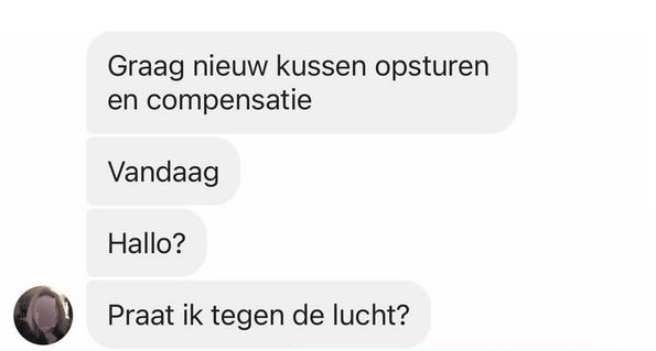 De klant gaf aan dat ze het kussen nog geen dag in huis had en