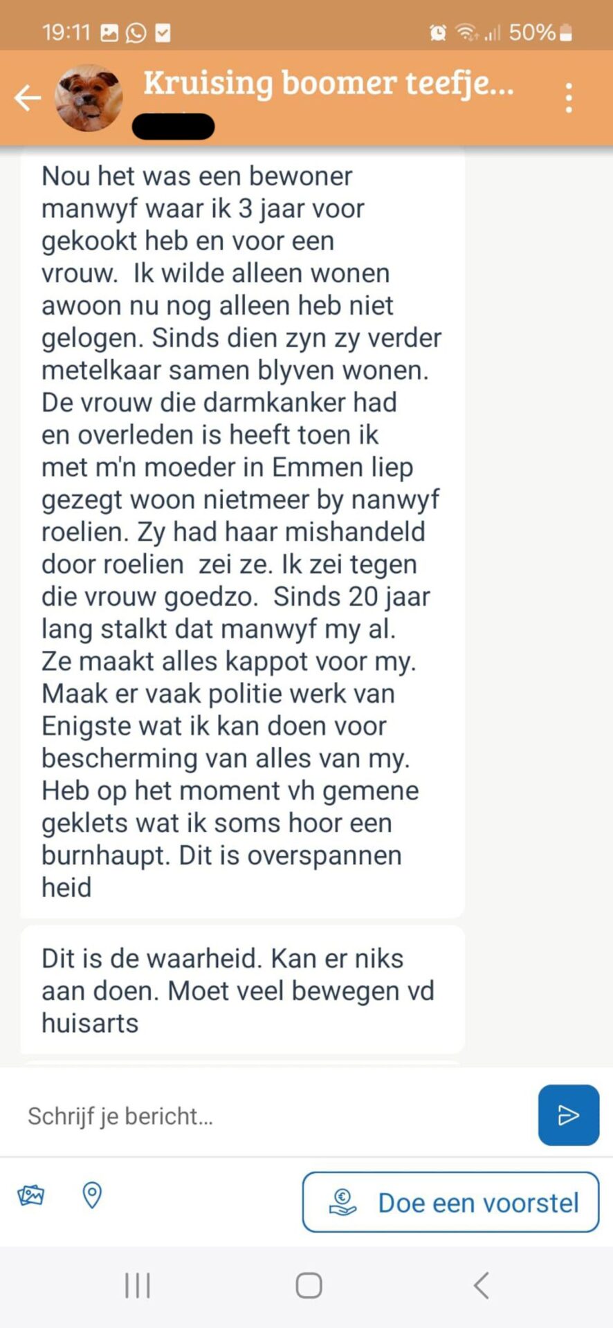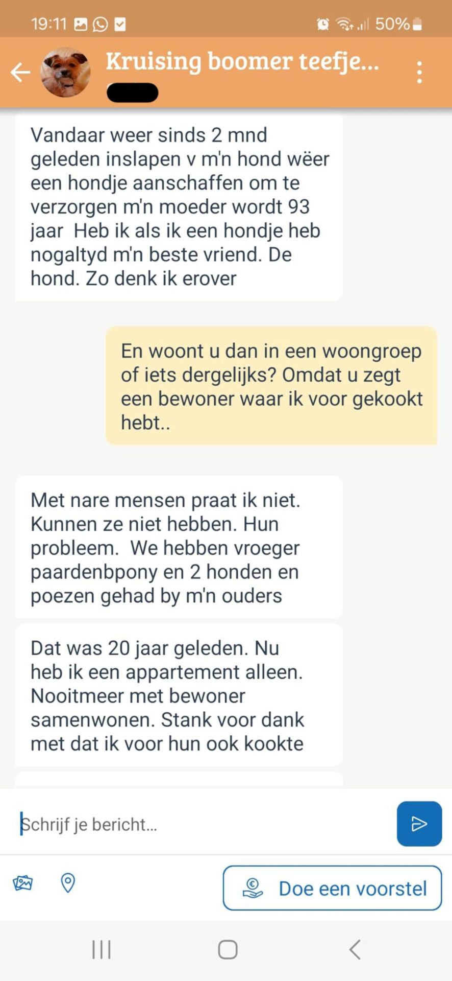Hoewel ze haar hondje wilde verkopen, had ze echt geen behoefte aan deze stortvloed van privé-informatie. Dit gesprek voelde niet alleen als een verkoop, maar ook als een enorme emotionele belasting.