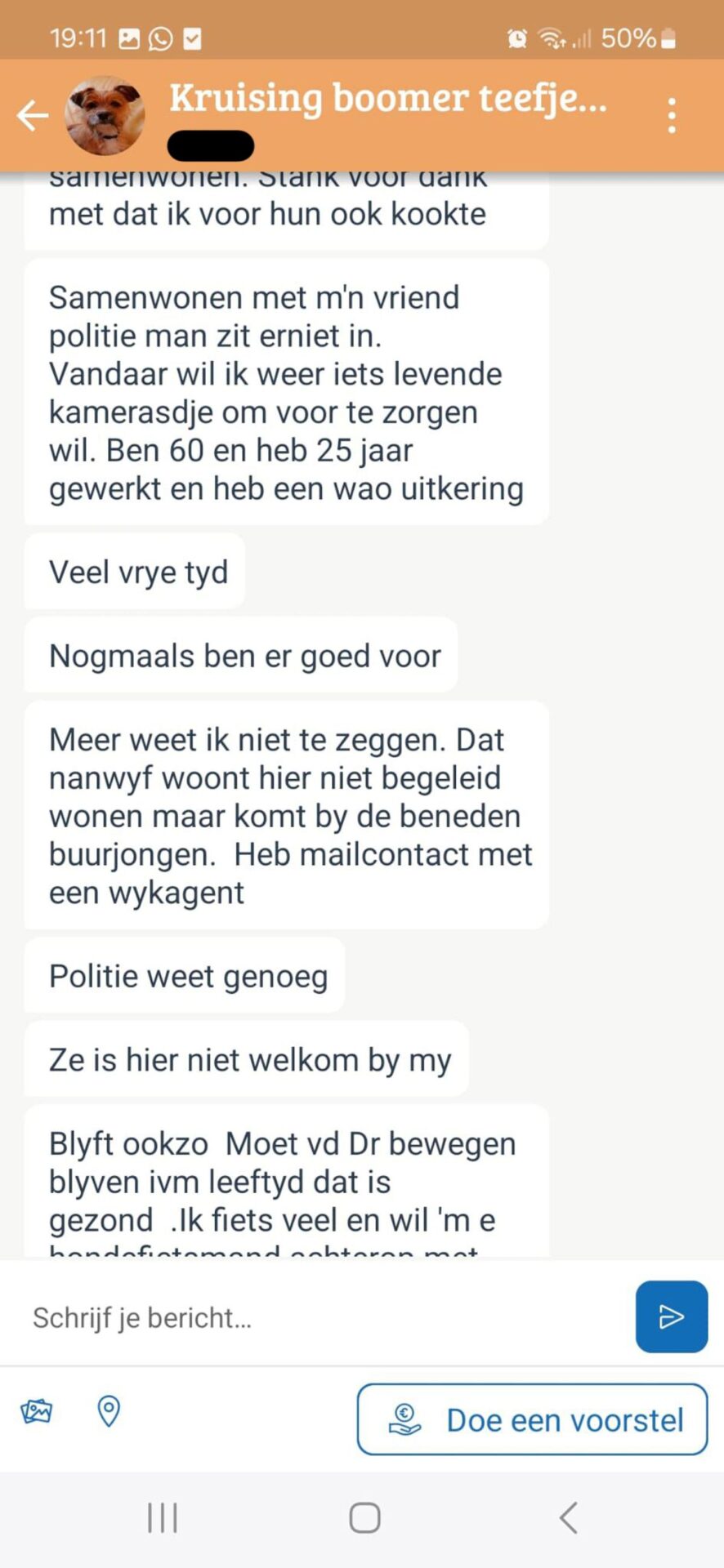 Na nog wat laatste berichtjes besloot de vrouw definitief het gesprek te beëindigen. Ze kon niet langer de emoties van iemand anders dragen en wilde weer focussen op de verkoop van haar hondje, zonder in deze drama’s verstrikt te raken.