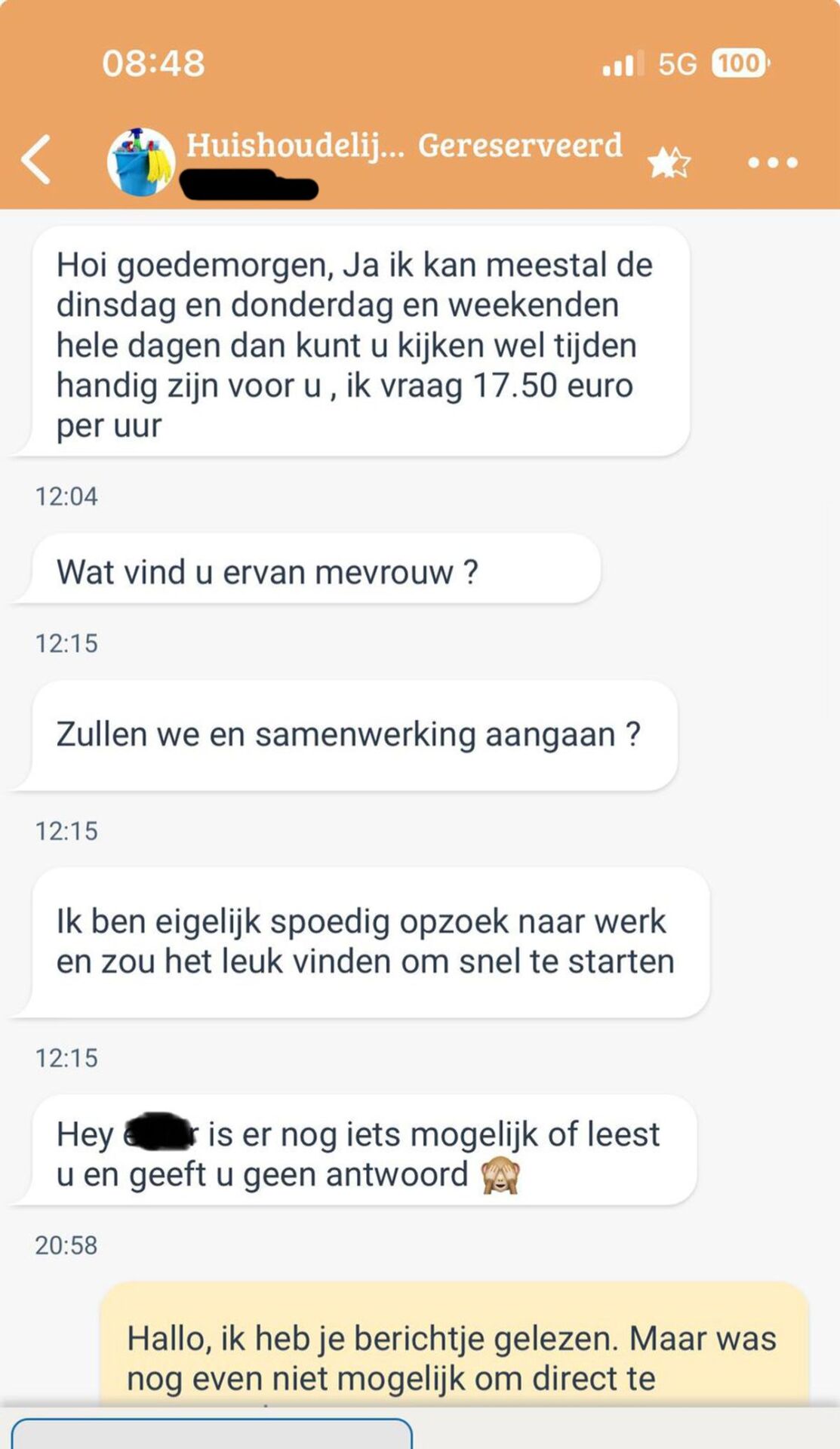 In zijn bericht bood Tom aan om haar te helpen, maar hij voegde er meteen aan toe: “Als je me eenmaal goed leert kennen, kan ik je helpen met veel meer dan alleen schoonmaken.” Sanne voelde meteen dat er iets niet helemaal in de haak was en vroeg zich af of dit wel een serieuze aanvraag was.