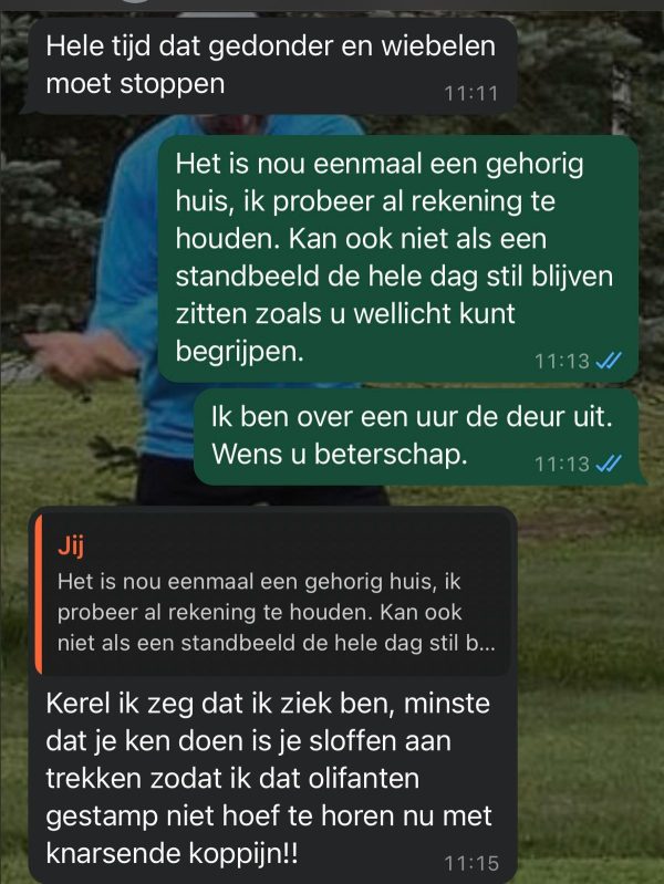 WhatsApp-gesprek tussen twee buren verloopt ietwat stroefjes: ´Gestampt moet stoppen, lig ziek op bed!´