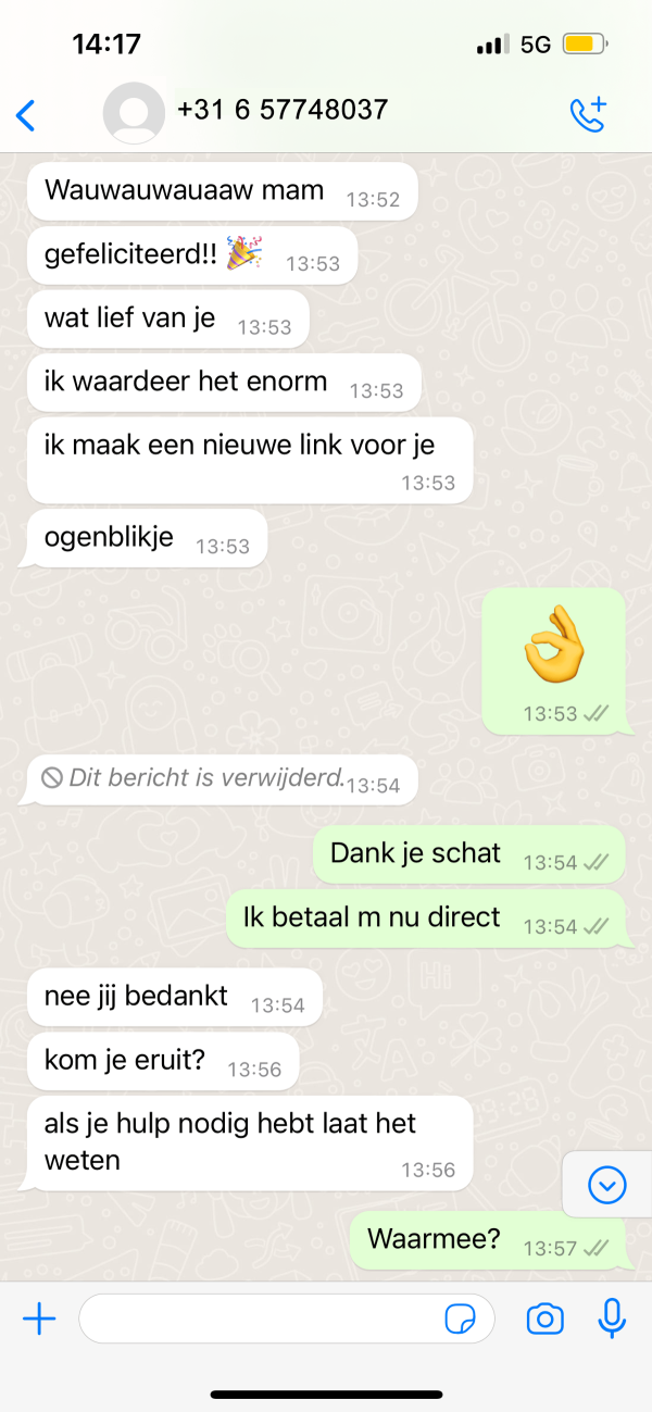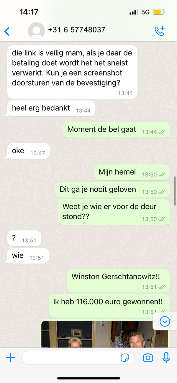 WhatsApp-oplichter die zich voordoet als zoon van de familie wordt lekker gemaakt met Winston Gerschtanowitz die ineens voor de deur staat