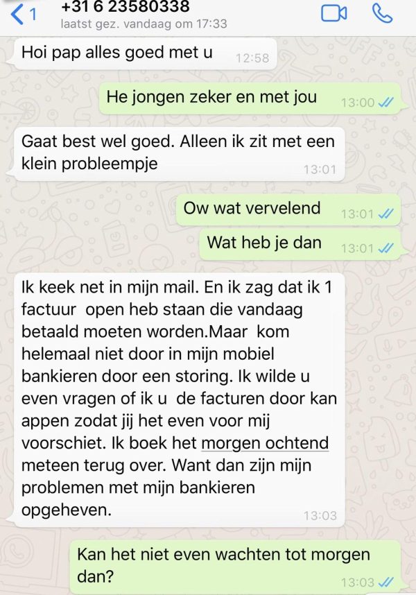 De meest voorkomende methode is dat een oplichter zich voordoet als een vriend die zijn of haar nummer heeft veranderd. “Hé, dit is mijn nieuwe nummer, kun je me helpen?” gevolgd door een verzoek om geld of gegevens.