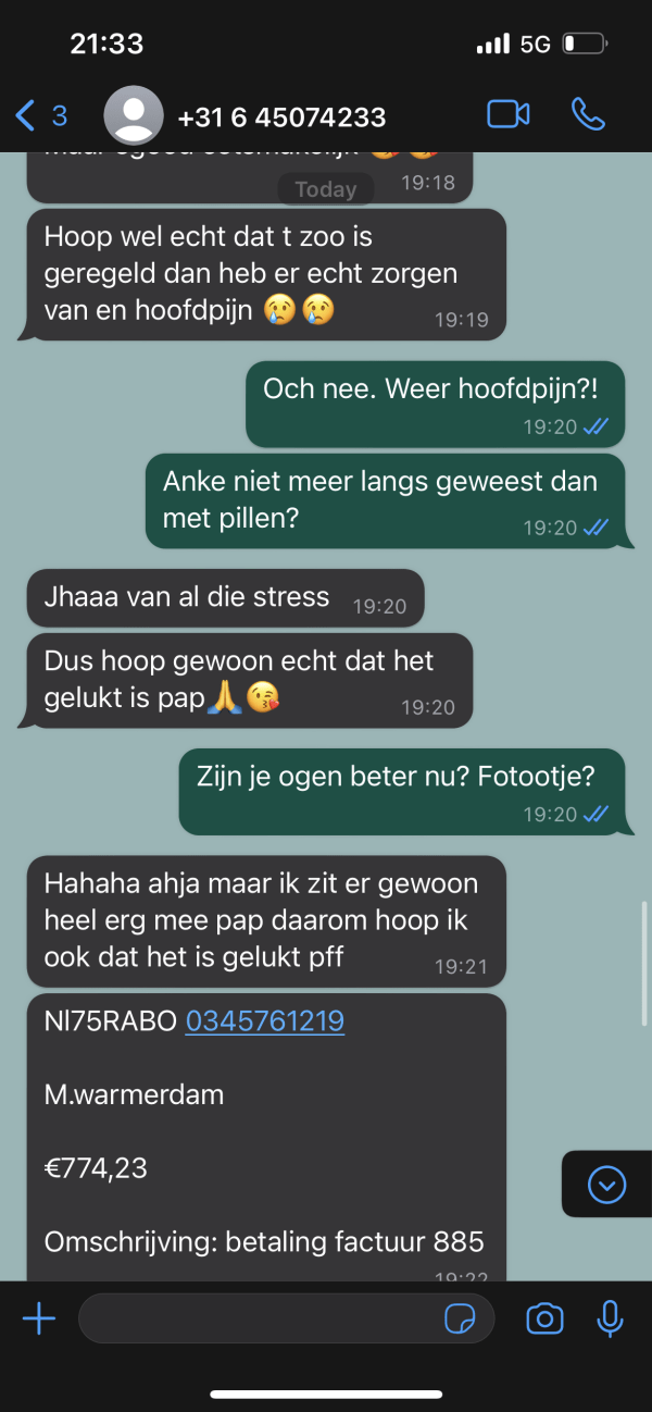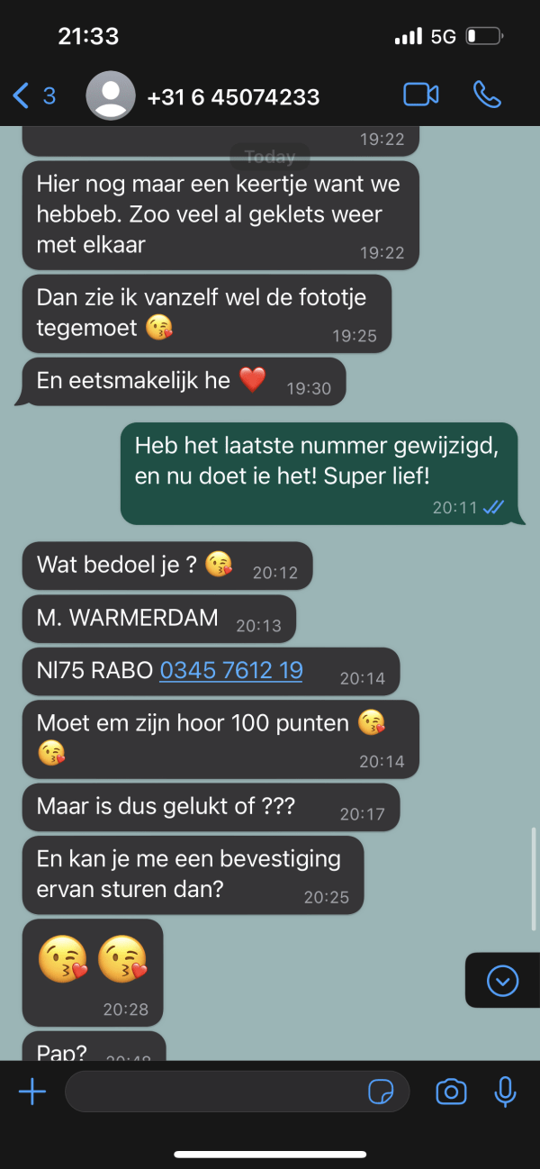 Toen Diederik de oplichter nog verder vertrouwde met zijn ‘ontnuchterende’ reacties, begon de scammer echt door de mand te vallen. Hij gaf Diederik vage instructies over het ‘instellen van de overboeking’ en stuurde allerlei onduidelijke links. Dit bleef maar doorgaan, en na een paar uur was het duidelijk dat Diederik zijn doel had bereikt. De oplichter was helemaal uitgeput.