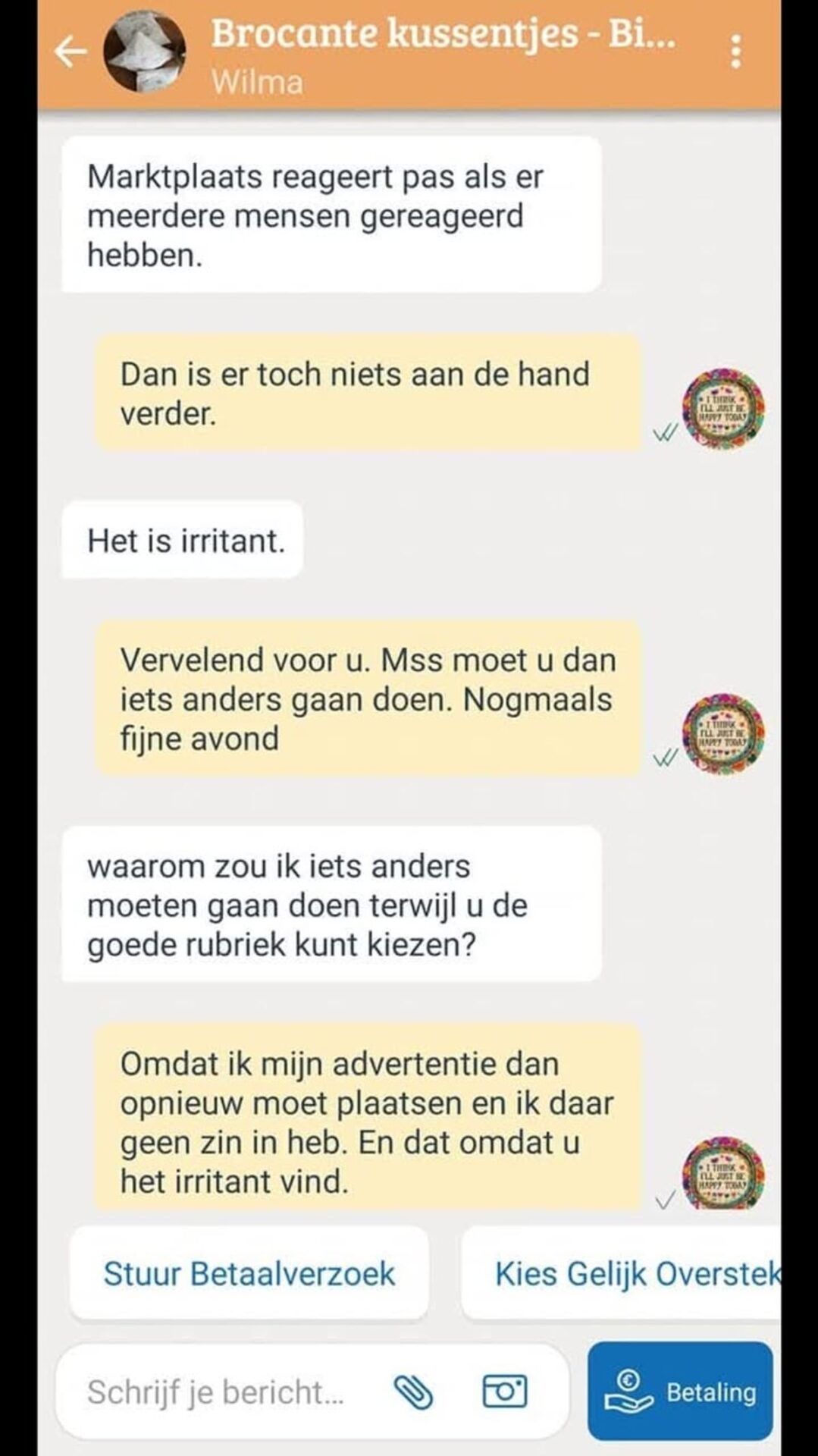 Wilma wordt helemaal gek van verkeerde Marktplaats-categorieën en besluit even lekker lastig te doen